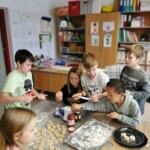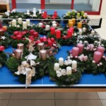 Am 29.11. fand der mittlerweile zur Tradition gewordene Adventmarkt bei uns in der Schule statt. Die 3. Klasse als Veranstalter hat sich lange darauf vorbereitet, im Unterricht wurde vielerlei gebastelt und Kekse gebacken, an 2 Nachmittagen stellten Eltern mit den Kindern gemeinsam in der Schule ebenfalls viele schöne Sachen her. Wie auch schon in den Jahren davor dekorierten unsere freiwilligen Helferinnen Andrea Dentinger und Marianne Peska mit großer Leidenschaft Adventkränze und Gestecke. Zur Eröffnung des Marktes präsentierten die Kinder die musikalische Reise eines kleinen Engels, der sich auf die Suche nach Advent- und Weihnachtsbräuchen in verschiedenen Ländern machte.