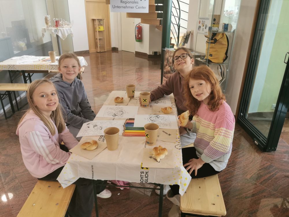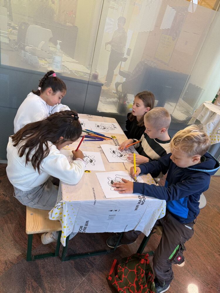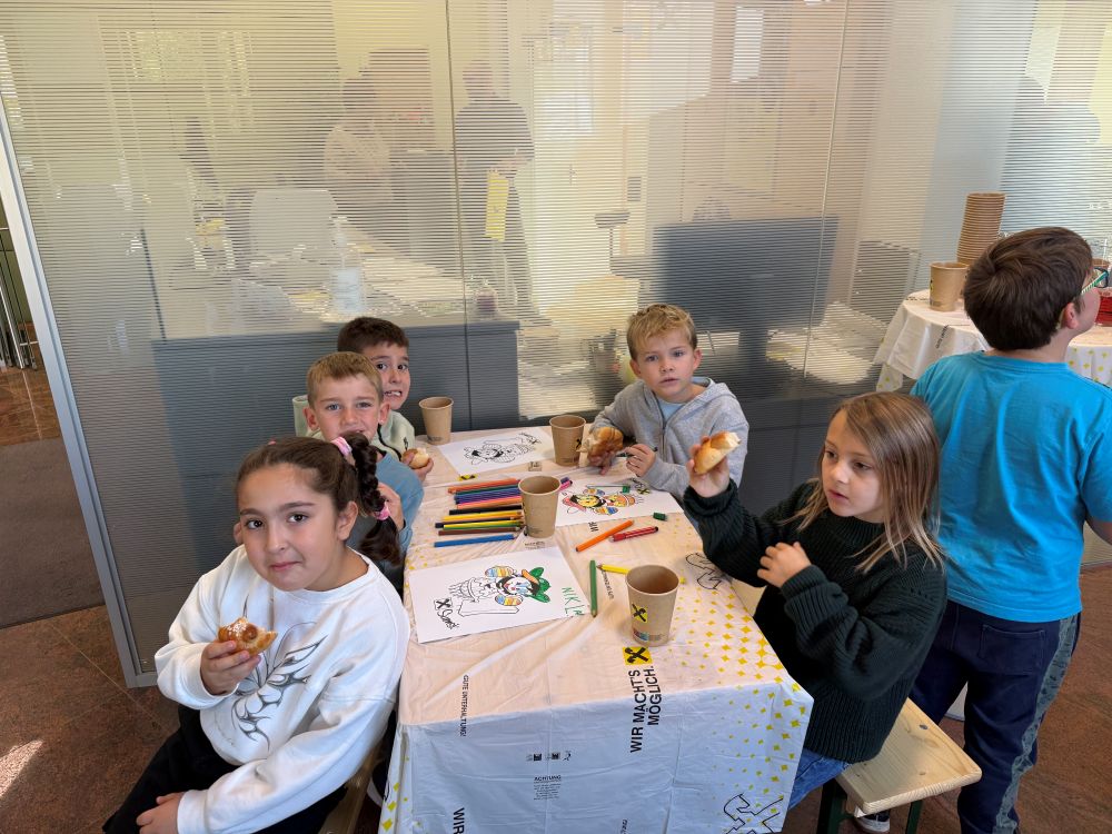 Im Anschluss durften die Kinder Sumsi-Bilder gestalten und erhielten zur Belohnung ein kleines Goodiebag, einen leckeren Striezel und Getränke.