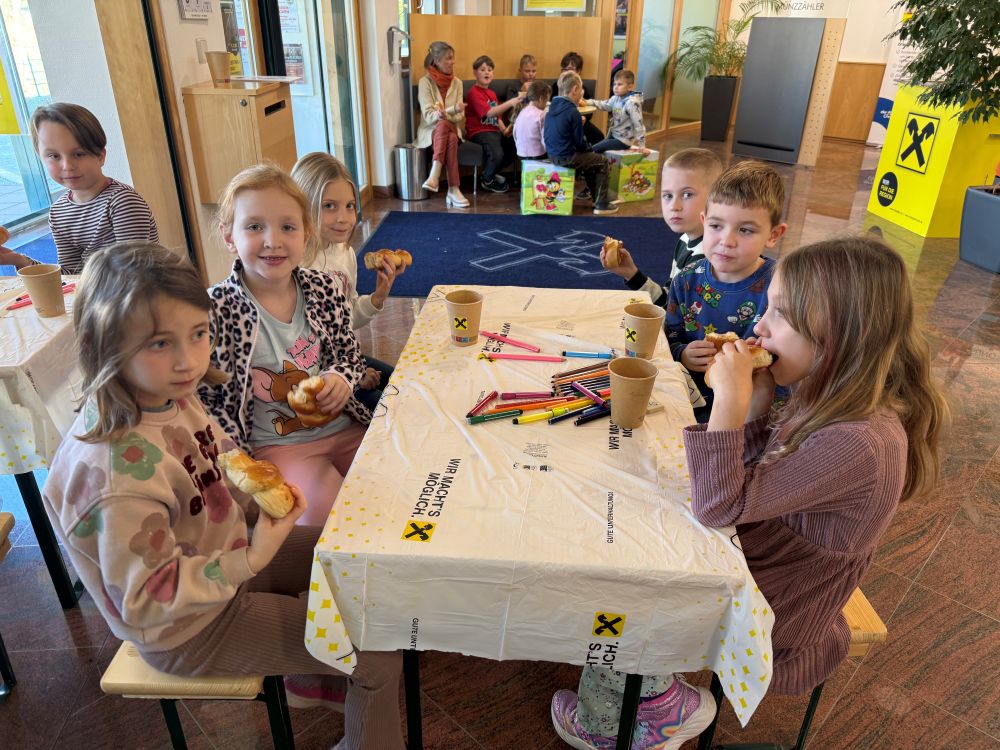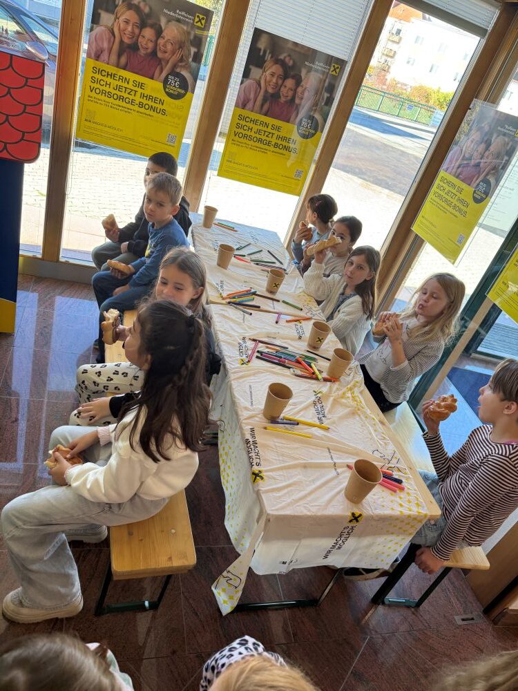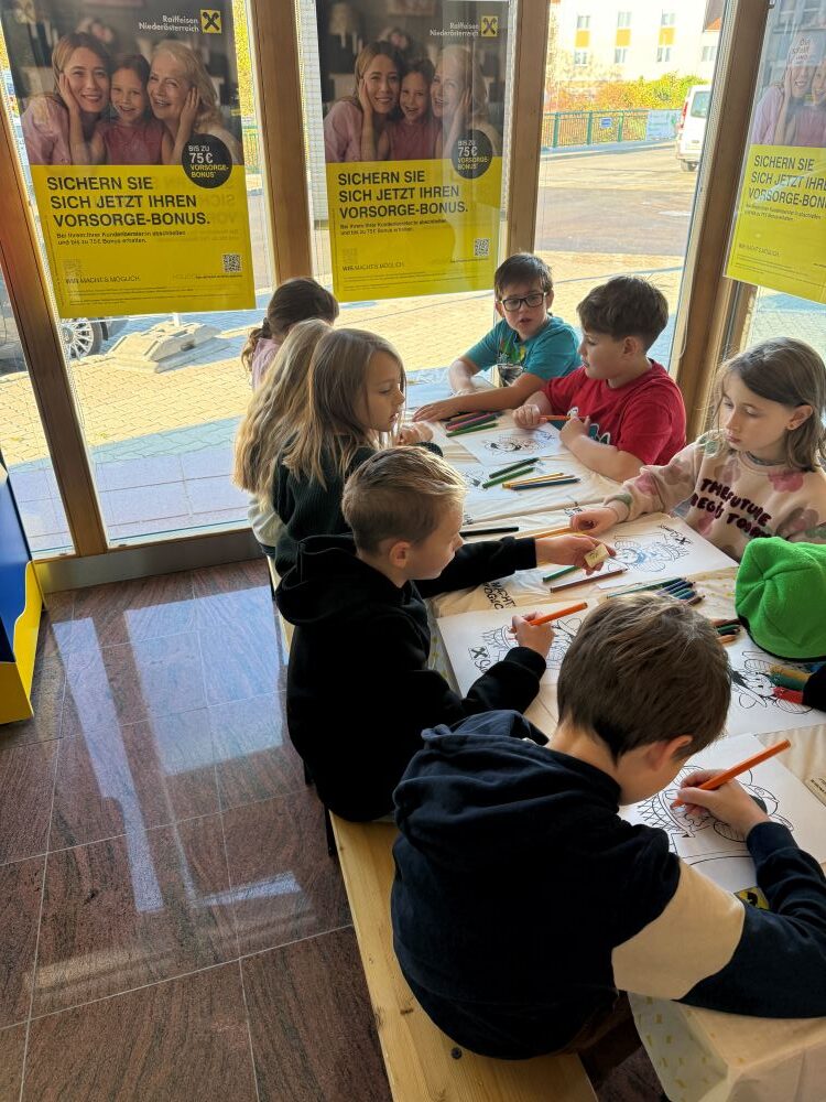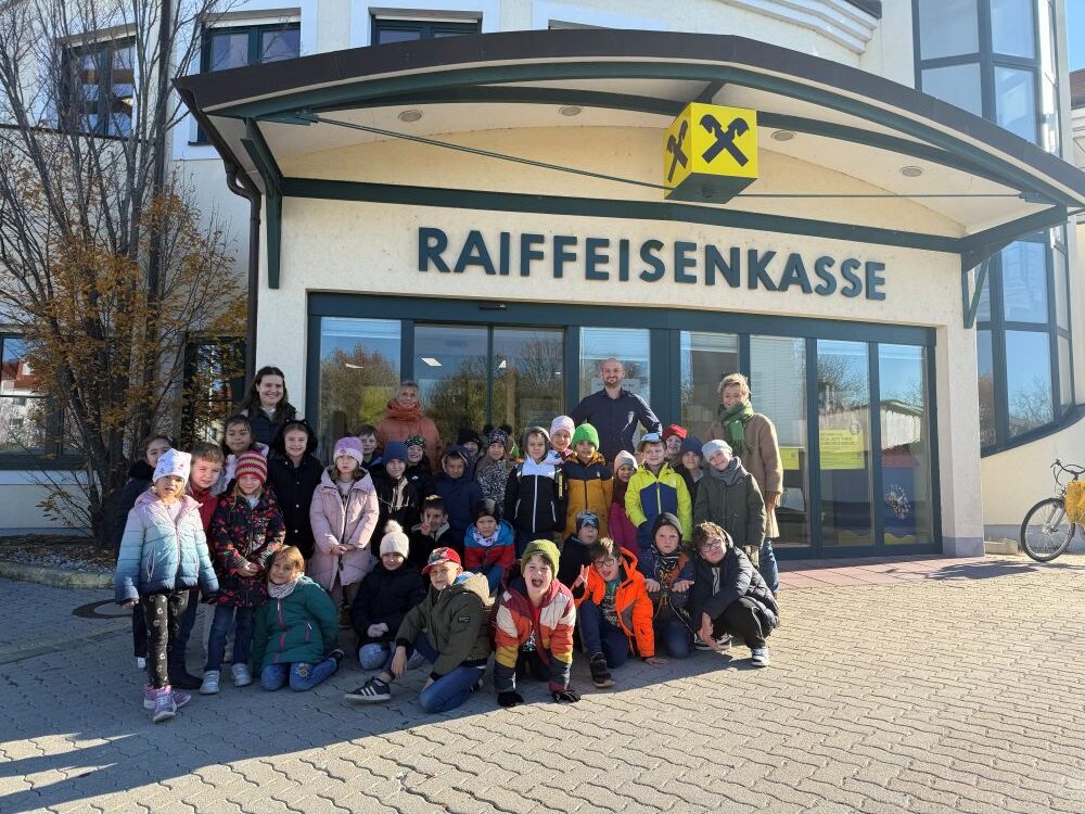 Rund um den Weltspartag unternahmen die Schülerinnen und Schüler einen Lehrausgang zur Raiffeisenbank Günselsdorf. Dort konnten die Kinder nicht nur ihr Erspartes einzahlen, sondern auch Interessantes über das Bankwesen erfahren – etwa, wie eine Bank funktioniert und warum Sparen wichtig ist.