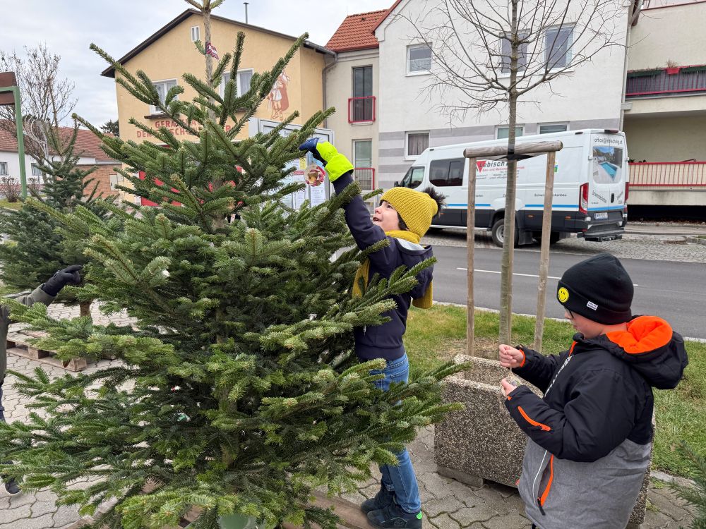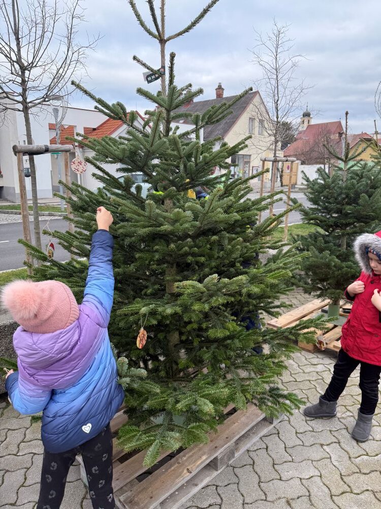 Auch heuer beteiligte sich unsere Schule am Schmücken der Christbäume beim Ortszentrum. Jedes Kind gestaltete eine eigene Kugel mittels Serviettentechnik und Kinder der 2.+3. Klasse brachten sie gemeinsam am Baum an. So strahlt der Christbaum nun in vielen bunten, individuellen Kunstwerken und sorgt für festliche Stimmung im Ort.