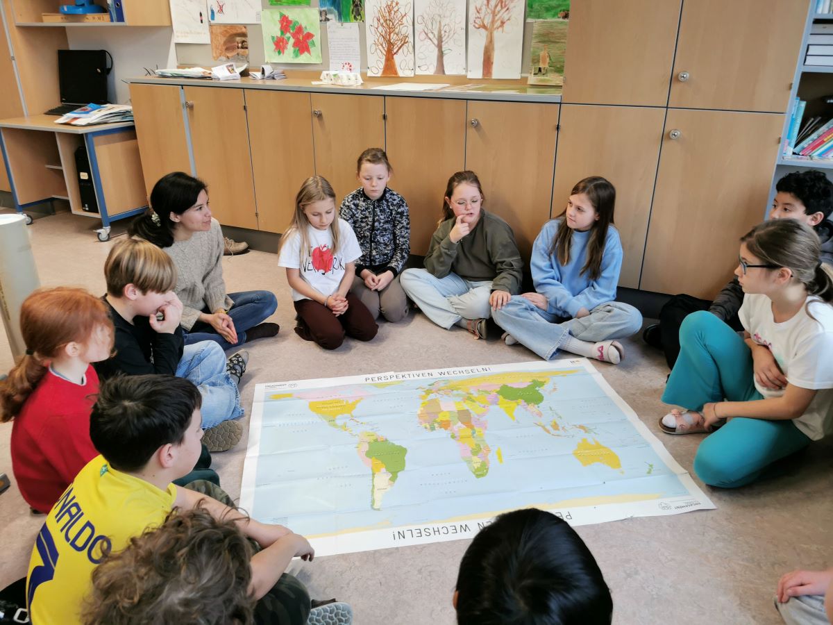 Die 3. + 4. Klasse nahm am Südwind-Workshop mit dem Titel „Der lange Weg der Jeans“ teil. Der Workshoptag fand in Kooperation mit der Gemeinde statt.