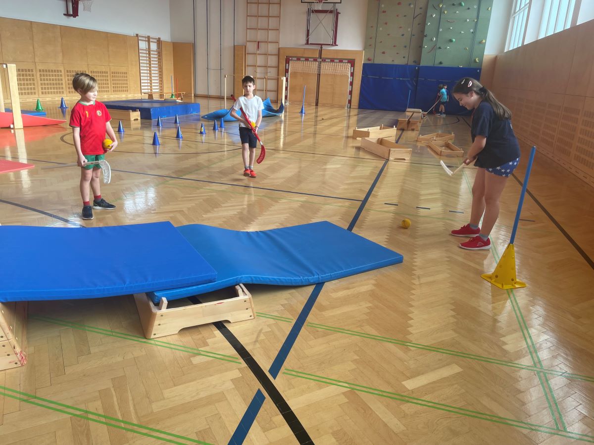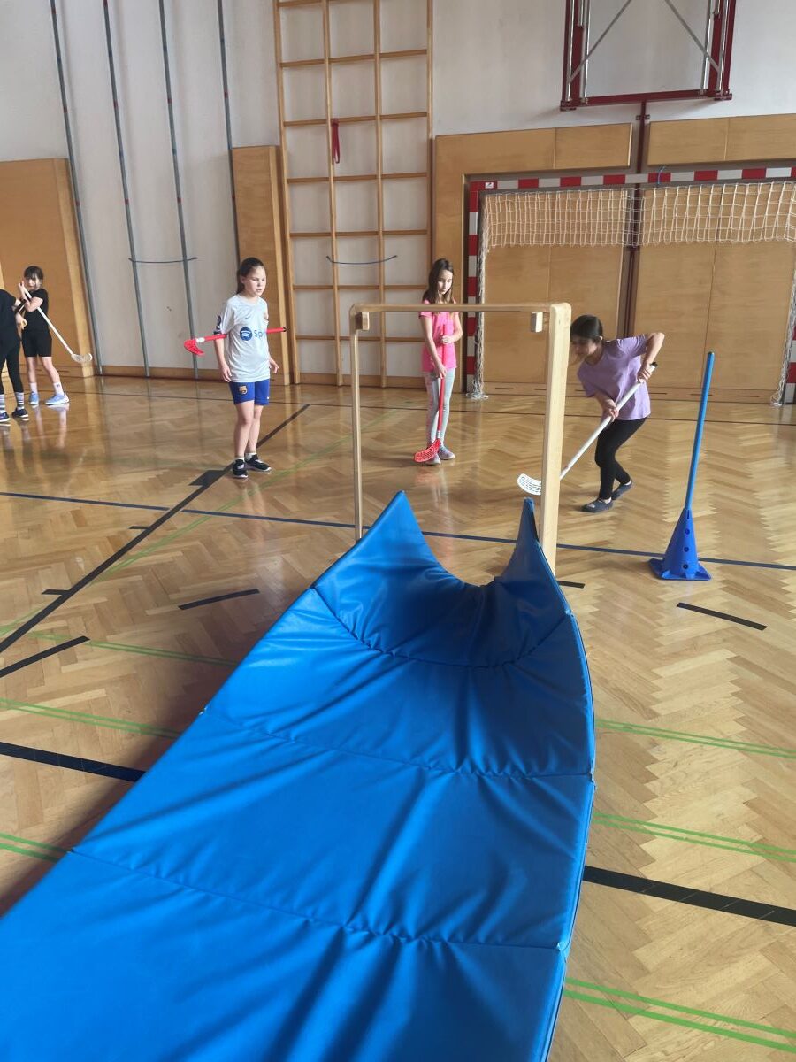 Heute überraschte die Klassenlehrerin der 2. Klasse, Lisa Katzenbeisser, die Schüler und Schülerinnen der gesamten Schule. Sie baute mit ihrer Klasse einen Minigolf-Parcours im Turnsaal auf, den alle Klassen in den Turnstunden verwenden konnten. Die Kinder hatten viel Spaß mit diesem neuen Angebot im Sportunterricht. Danke, Lisa! 🙂