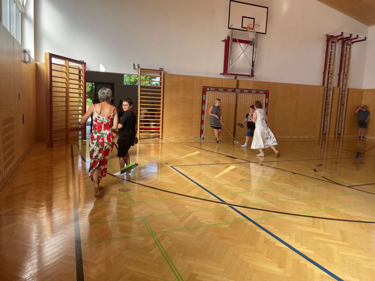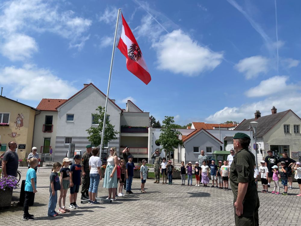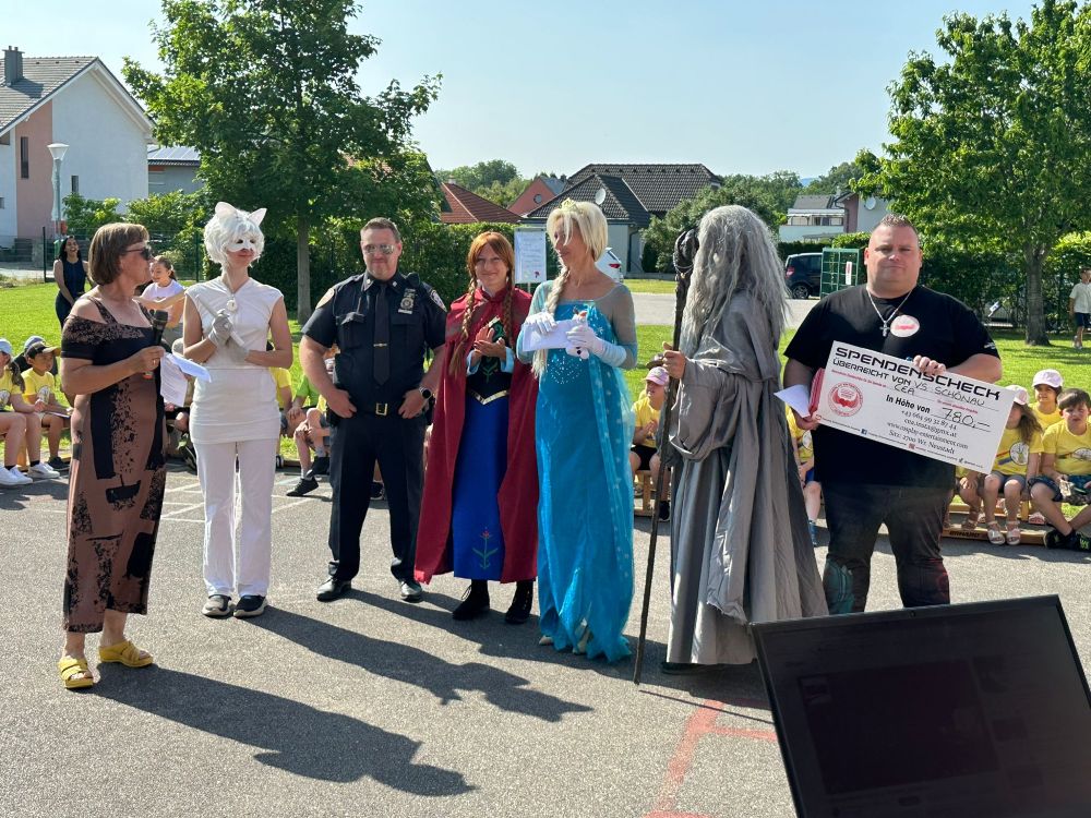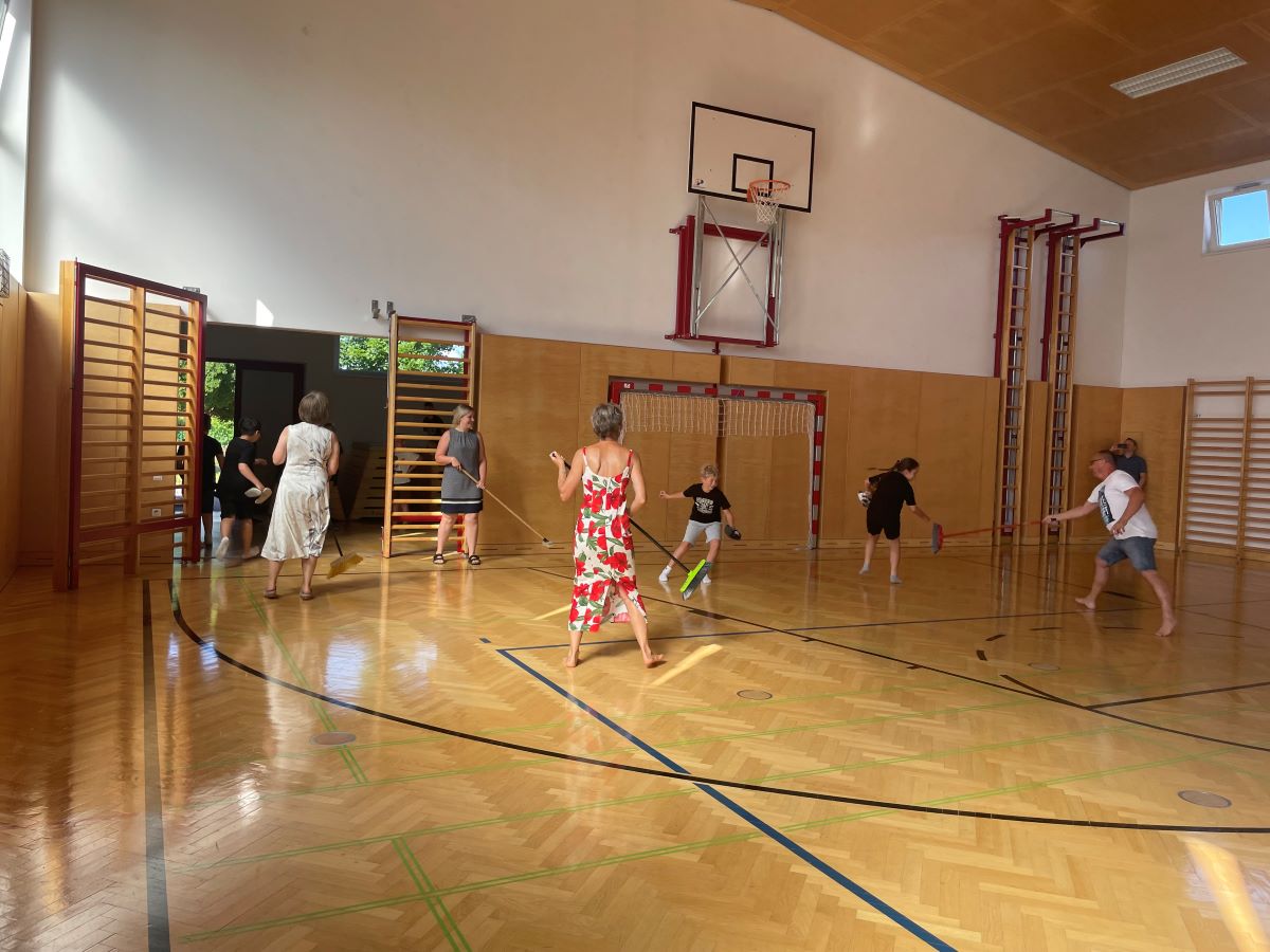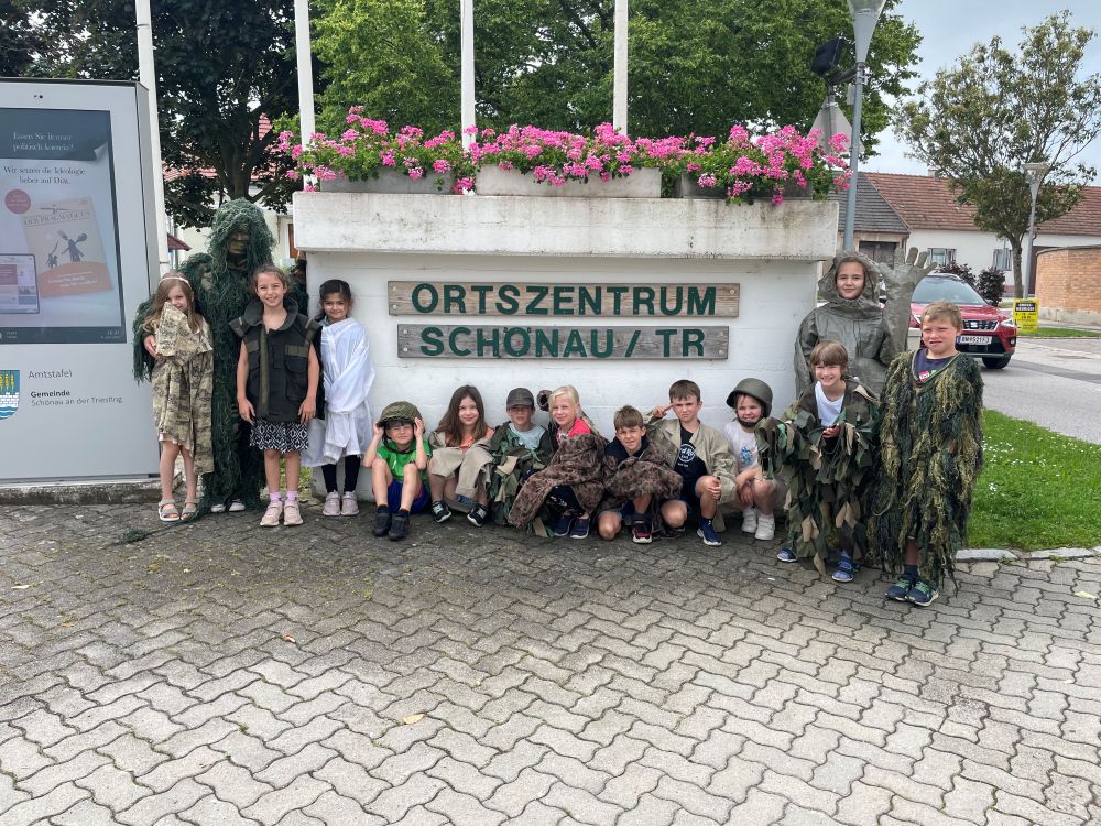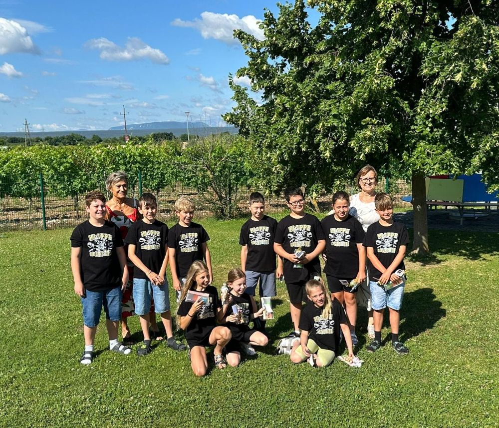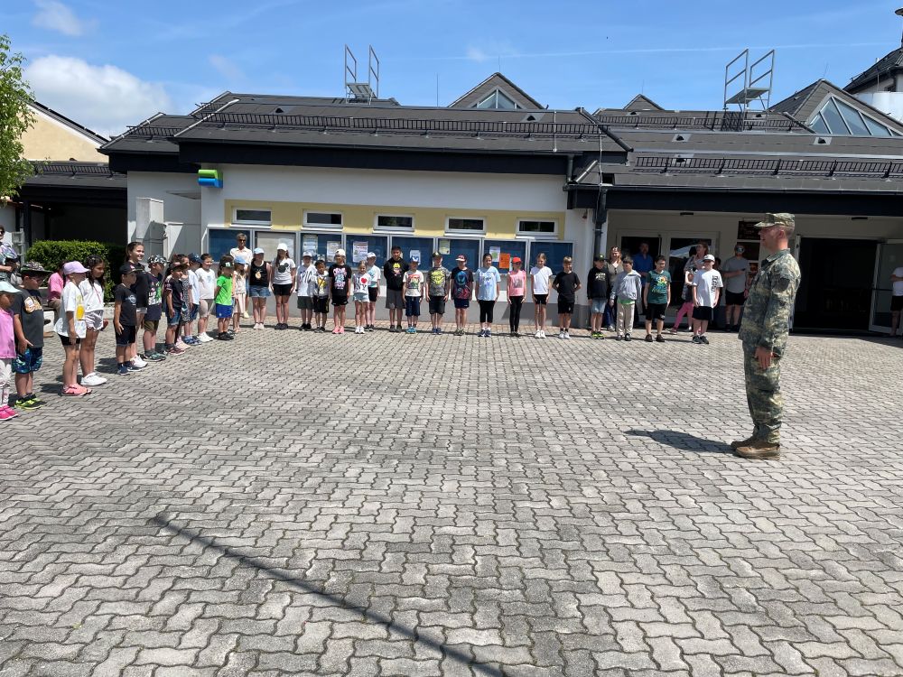 Wie an jedem letzten Schultag eines Schuljahres mussten wir uns auch heuer von einer 4. Klasse verabschieden. Es kamen viele Eltern und Großeltern zu dieser Feier im Turnsaal der Volksschule. Die 10 Schüler/innen der Abschlussklasse von Fr. Mayer nahmen auf den Ehrensesseln in der ersten Reihe Platz. Nach den Eröffnungsworten unserer Schulleiterin richtete die 2. Klasse das Wort an die Großen, die uns nun verlassen. Anschließend sangen alle Kinder der 1. bis 3. Klasse ein passendes Lied und die 3. Klasse überreichte jedem scheidenden Viertklässler ein kleines Geschenk mit persönlichen Worten. Auch die Abschlussklasse wollte etwas zur Feier beitragen. Sie berichteten von besonderen Aktivitäten im letzten Schuljahr – dem Schokolade-Projekt, dem Ausflug in den Kletterpark und von der Zeltnacht in der vorletzten Schulwoche. Bevor die 10 Buben und Mädchen dann traditionell aus der Schule gekehrt wurden, erhielten sie mit netten Worten noch Geschenke von der Gemeindevertretung und dem Elternverein. Schön, dass Frau Bürgermeister Lassinger, Frau Amtsrätin Ofner und Frau Simmel, die Obfrau des Elternvereins, mit uns gefeiert haben!