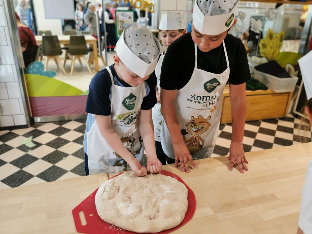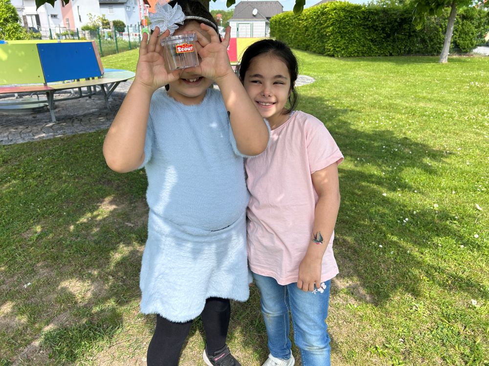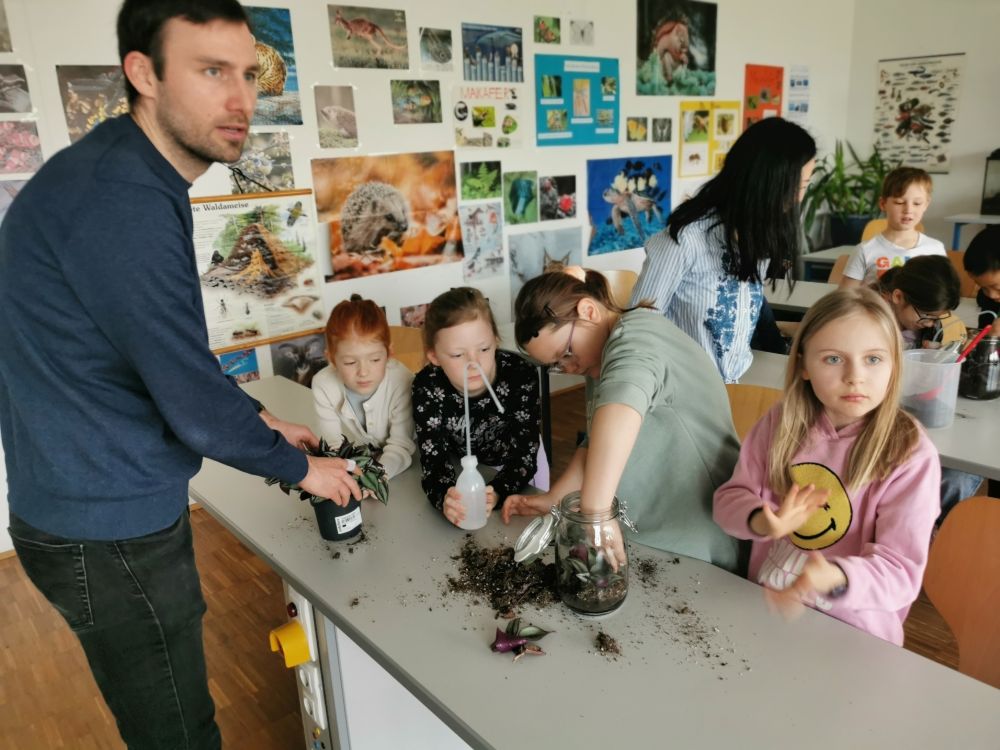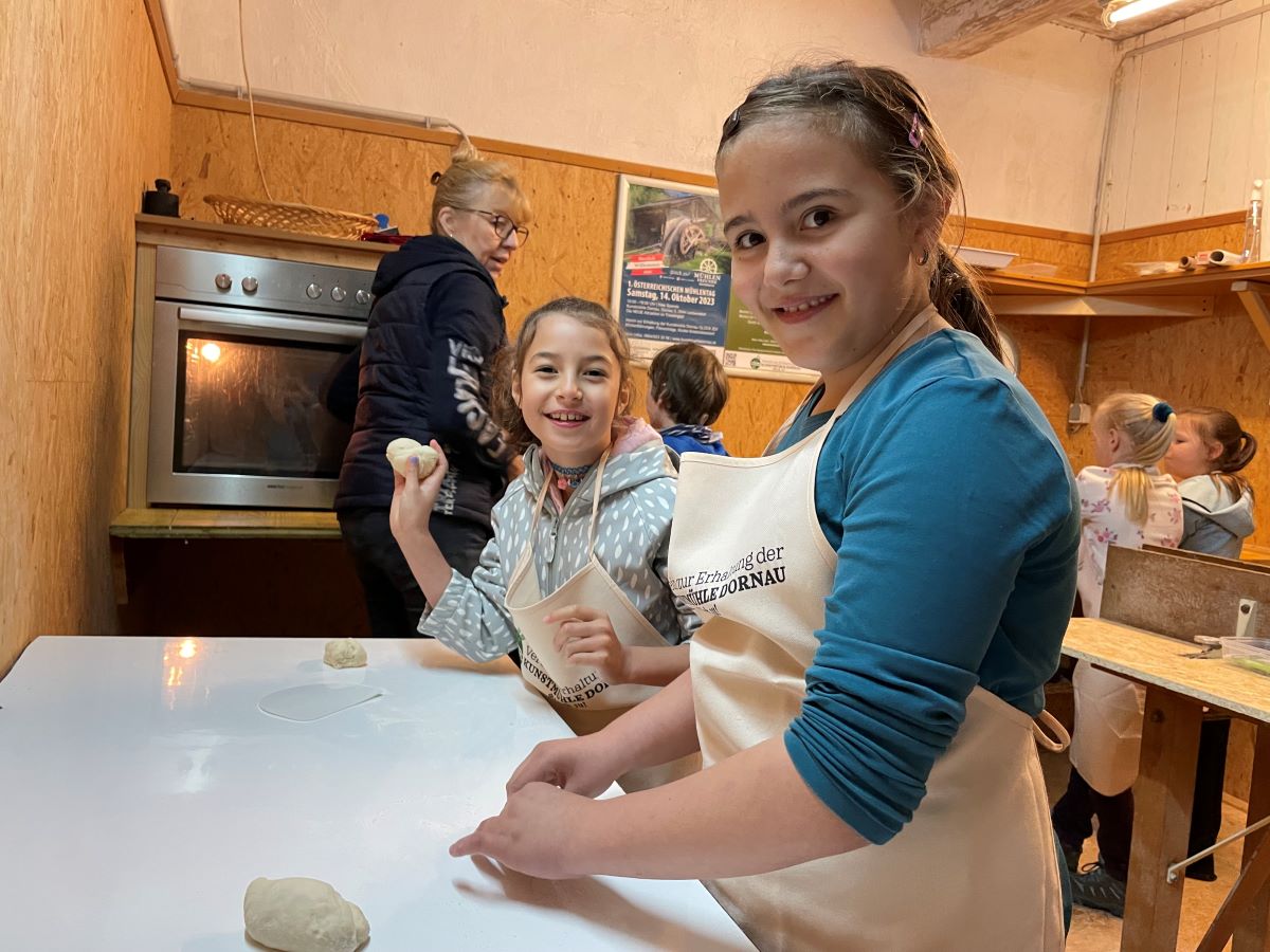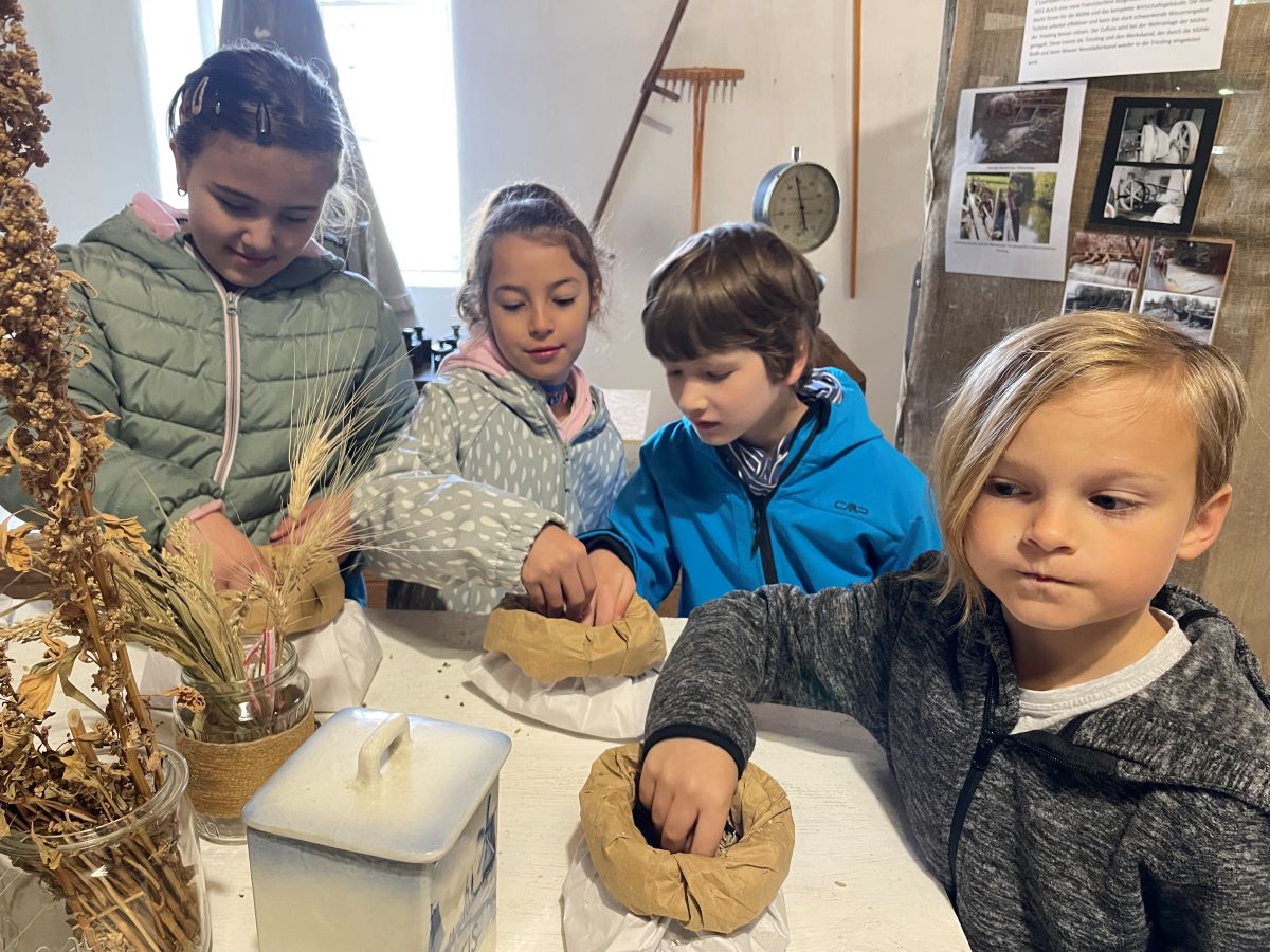 Mit viel Engagement beteiligten sich die Kinder auch an der Kräuterwerkstatt mit Erna. Die Kräuter wurden selbst gepflückt und dann zu einem Aufstrich und Kräutersalz verarbeitet.