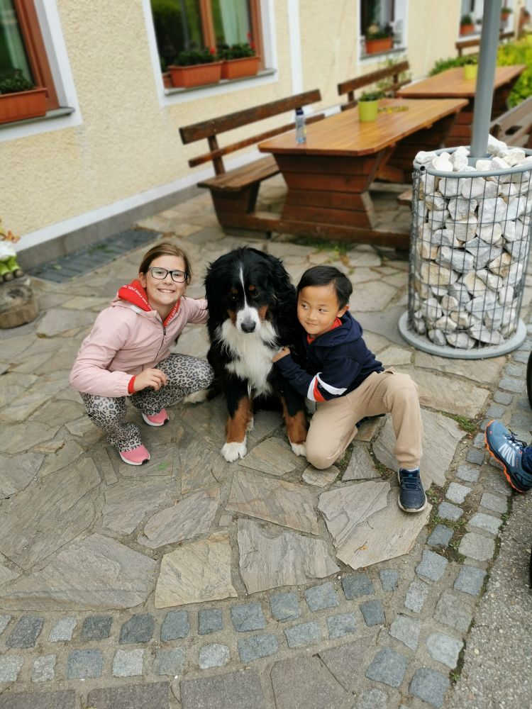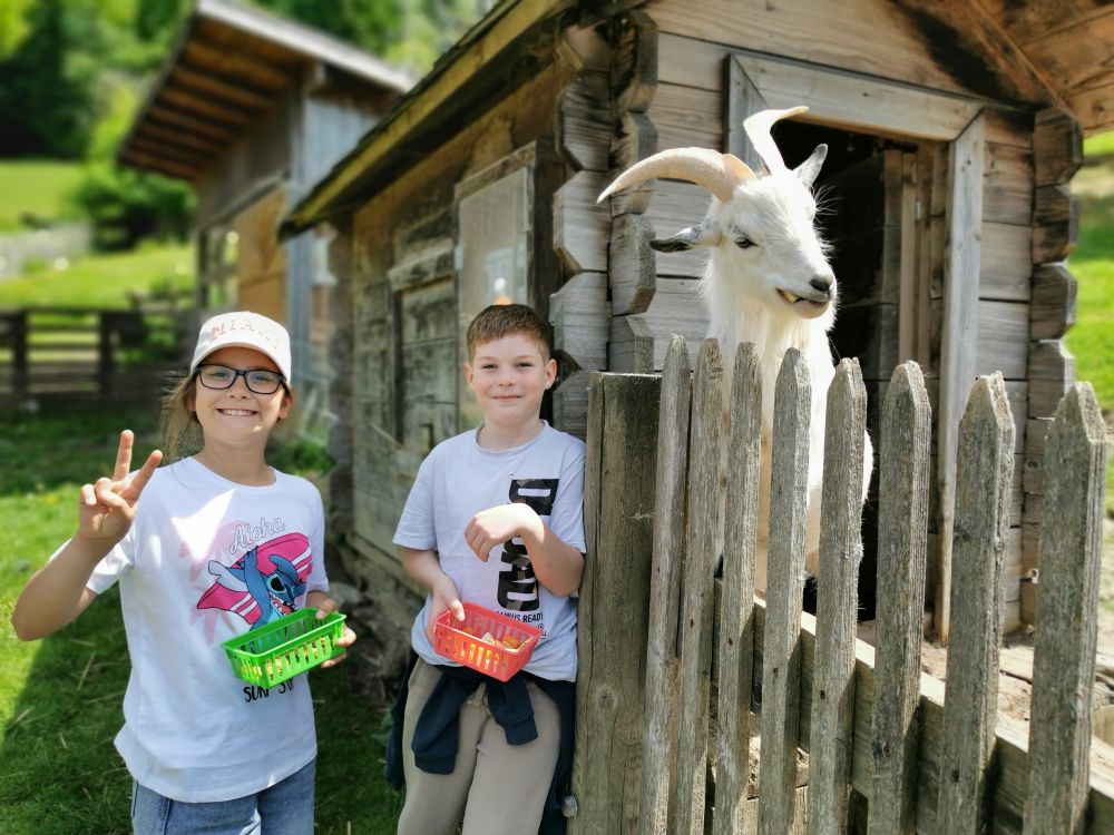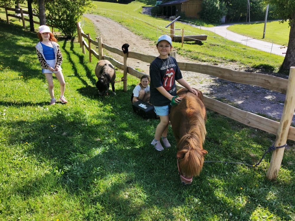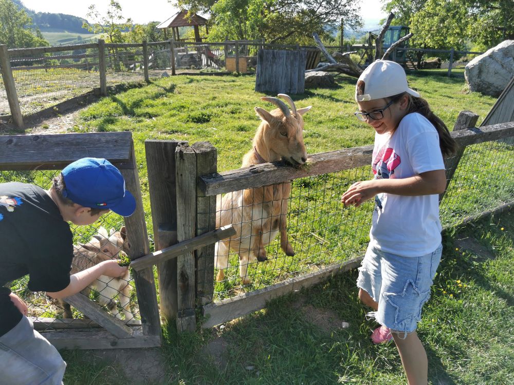 Highlight auf dem Forellenhof war der riesige Spielplatz, der keine Wünsche offen lässt. Die Kinder verbrachten dort täglich viel Zeit mit Spielen und Toben. Die Tiere (Ziegen, Ponys, Kaninchen,….) erhielten Unmengen an Streicheleinheiten. Alle durften einmal in den Kuhstall und dort die Kühe selbst für das Melken mit der Maschine vorbereiten. Als Belohnung gab es ein Melkdiplom. Am Mittwoch verwöhnte uns Gerti Erber, die Hausherrin, mit einem besonderen Abendessen – in der Grillhütte gab es Grillwürstel für alle.