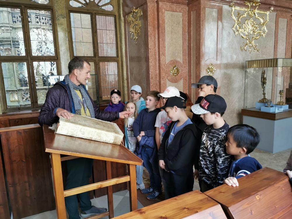 Am Donnerstag ging es mit der Himmelstreppe nach Mariazell. Dort brachten uns Gondeln auf die Bürgeralpe, wo eine interessante Führung zum Thema „Wunder des Waldes“ auf dem Programm stand. Zu Mittag begann es leider zu regnen, aber auch das konnte die gute Laune nicht trüben. Der letzte Tag begann mit einer interessanten Führung durch das Stift Melk. Besonders die Bibliothek und der herrliche Ausblick auf die Donau bleiben sicher lange in Erinnerung. Eine Schifffahrt von Melk nach Krems war die letzte Aktivität der Projektwoche.