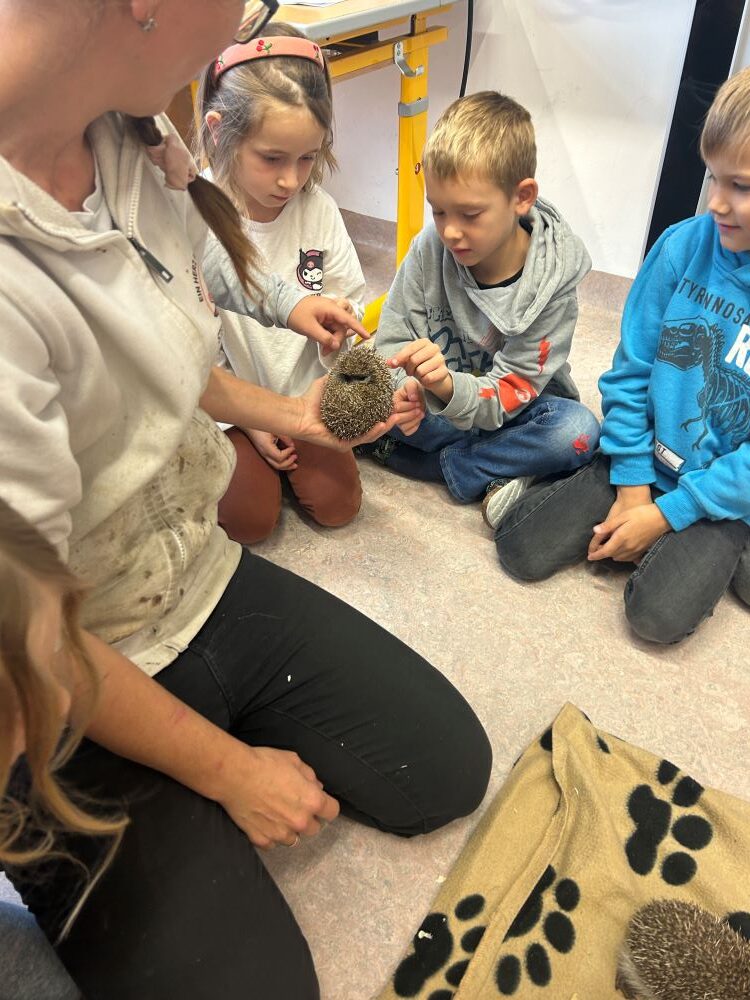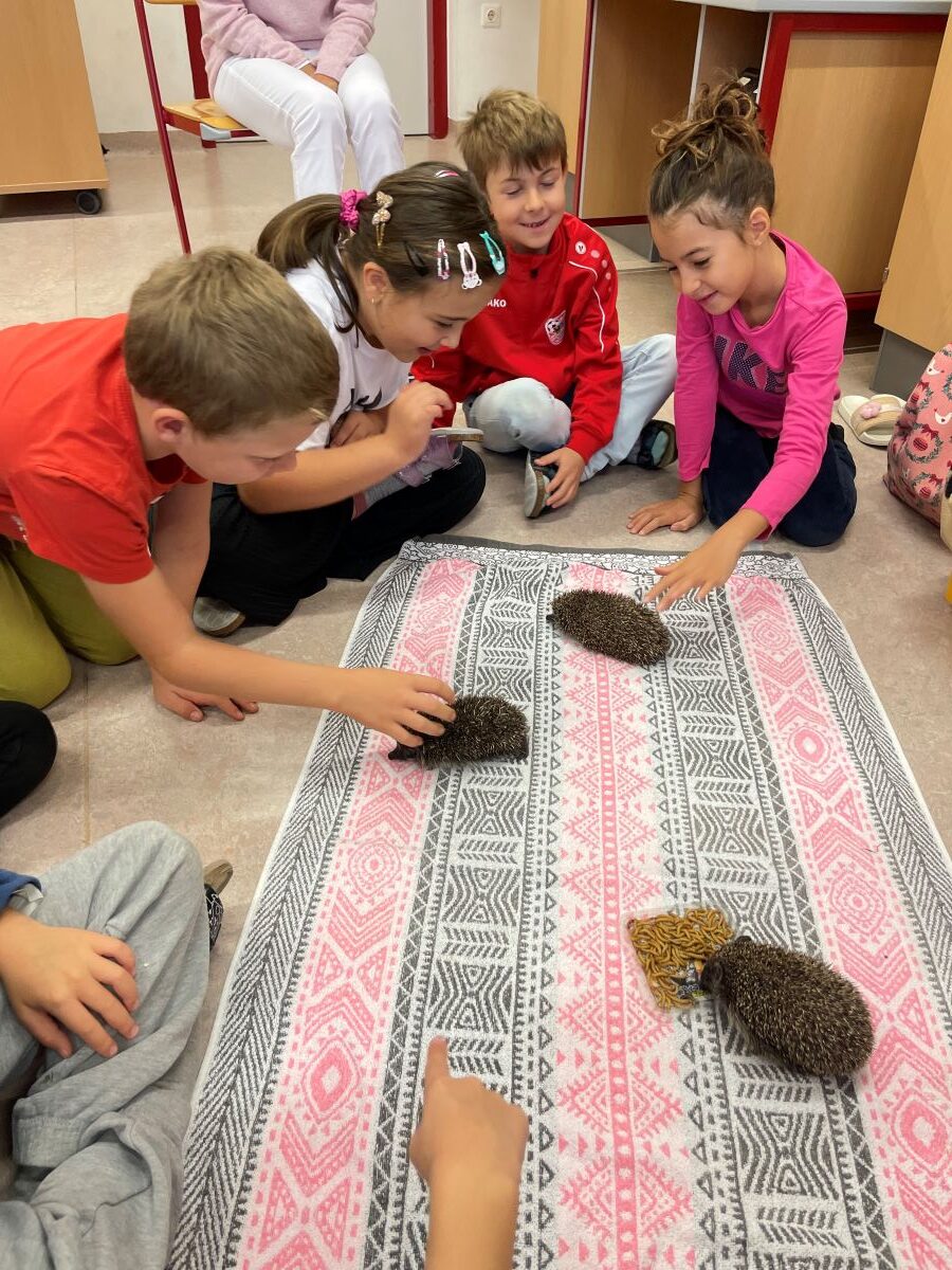 Heute war ein ganz besonderer Tag für alle SchülerInnen und LehrerInnen unserer Schule. Carina, von der Wildtierhilfe Steinabrückl, besuchte uns mit mehreren Igeln, die bei ihr – viel zu klein und schwach für den bevorstehenden Winterschlaf – aufgenommen wurden. Die kleinen „Stachelrücken“ werden nun aufgepäppelt und gut umsorgt, sodass sie hoffentlich im Dezember fit für einen etwas verspäteten Winterschlaf sein werden.