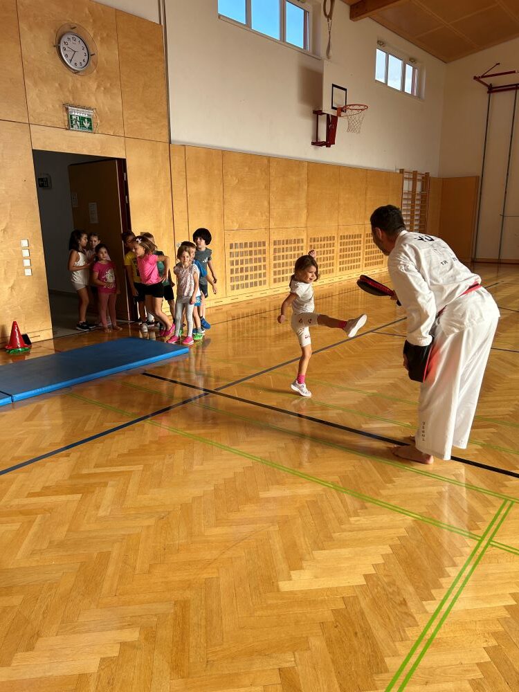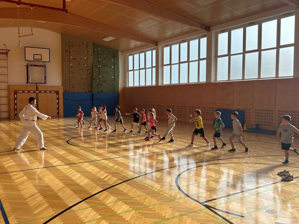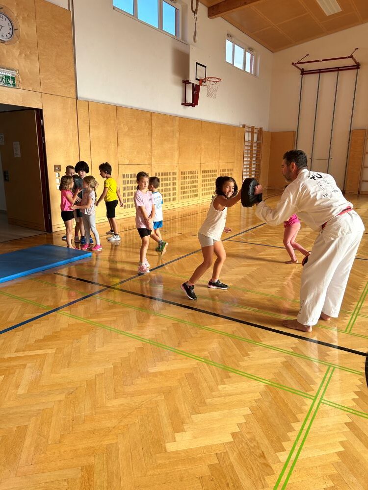 Am 11.10.2024 besuchte uns Sigurd vom YU-Taekwondo Studio in Baden. Jede Klasse durfte eine Unterrichtseinheit mit ihm verbringen und in die neue Sportart hinein schnuppern. Wir lernten auf koreanisch Zählen, sowie Kicks und Verteidigungstricks. Zum Abschluss durften die Kinder einen Bewegungsparcours absolvieren und ihr Geschick unter Beweis stellen.