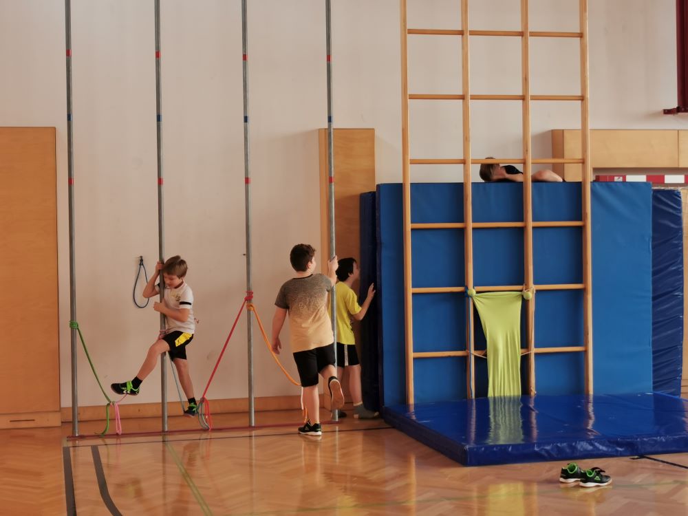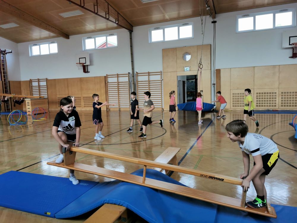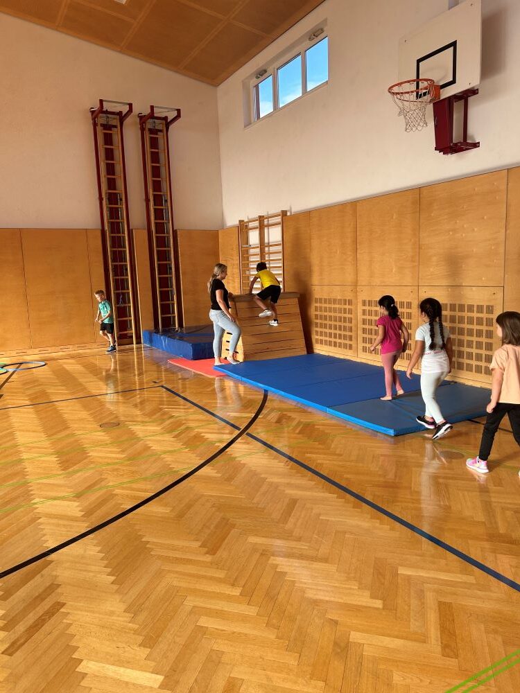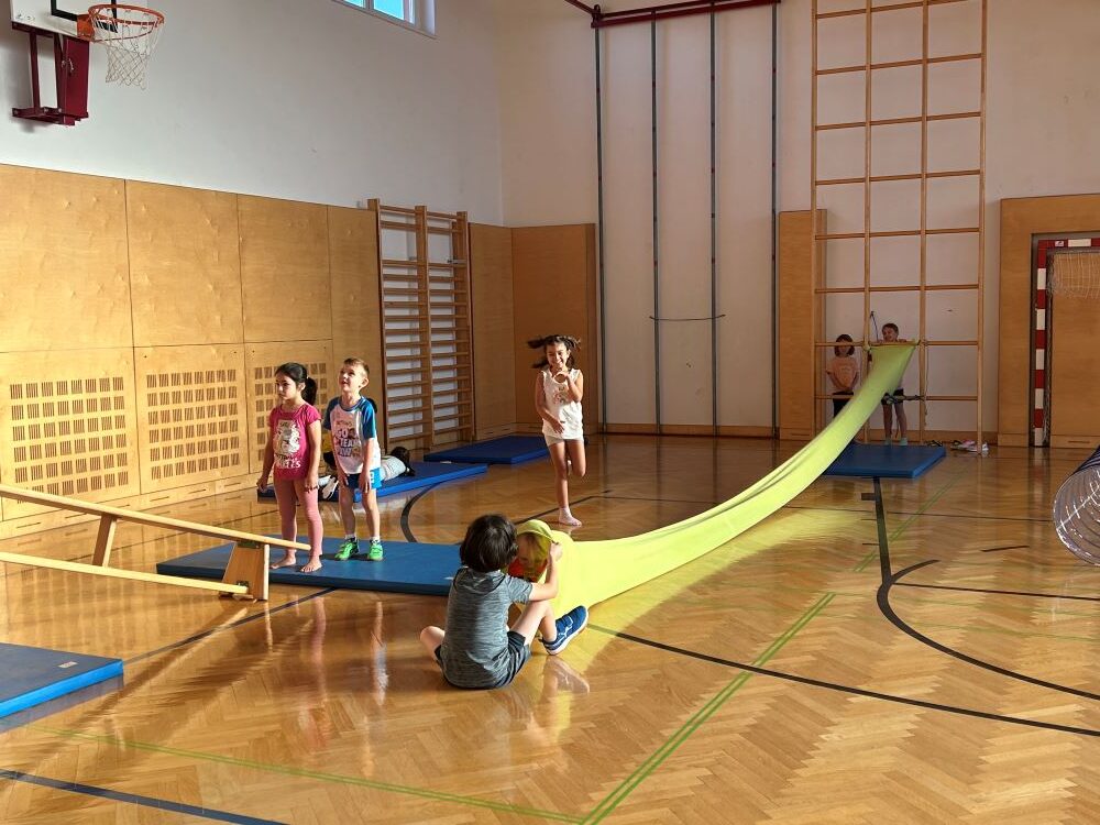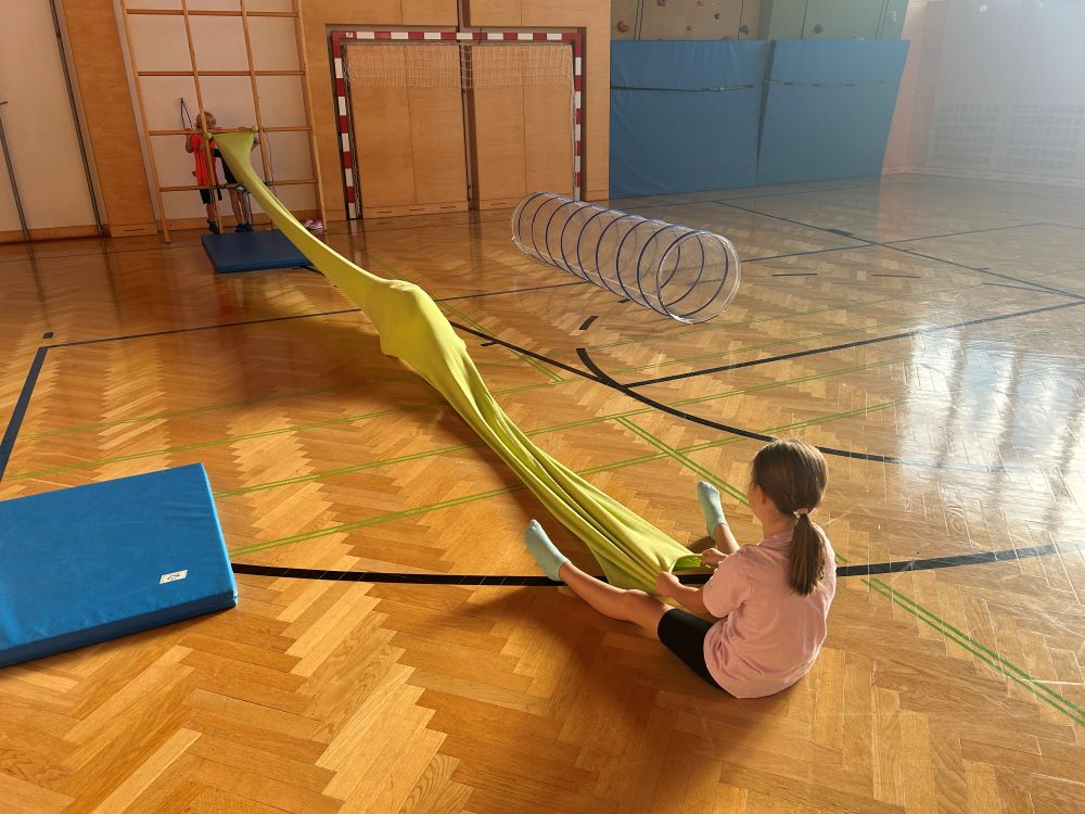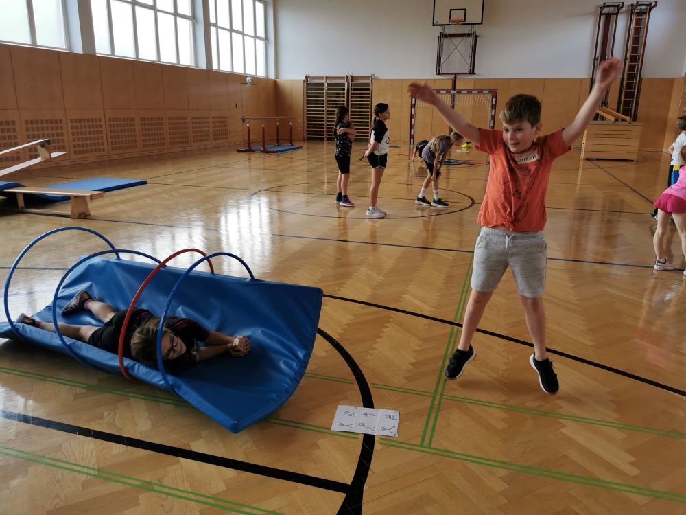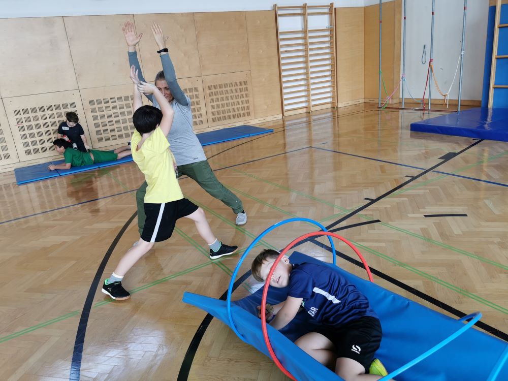Die Kinder fanden viele Stationen zum Thema „Wahrnehmungsförderung und Achtsamkeit“ im Turnsaal vor und hatten Freude diese zu entdecken.