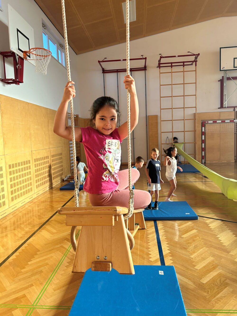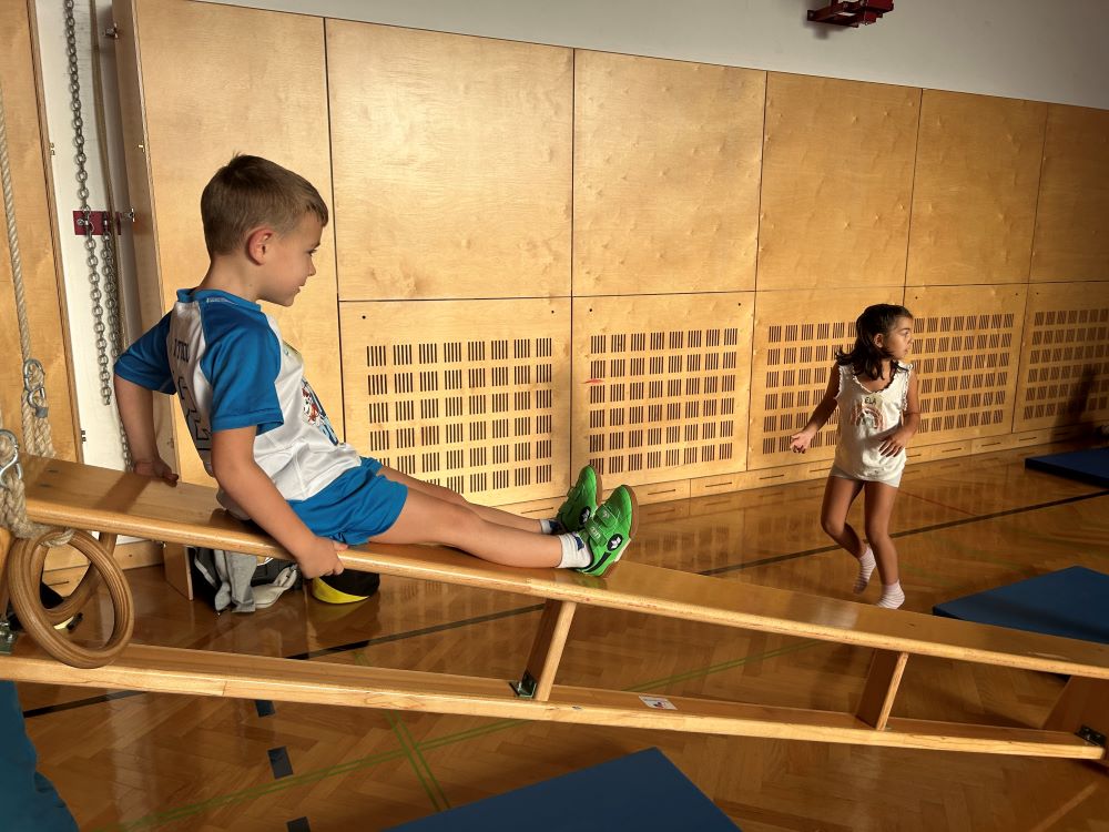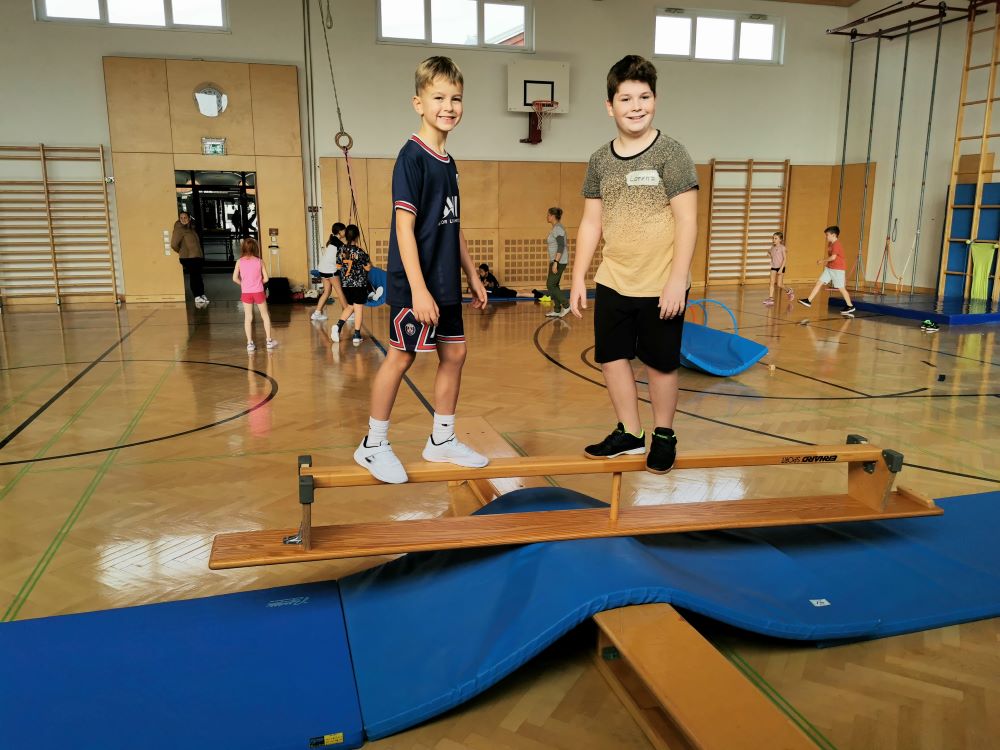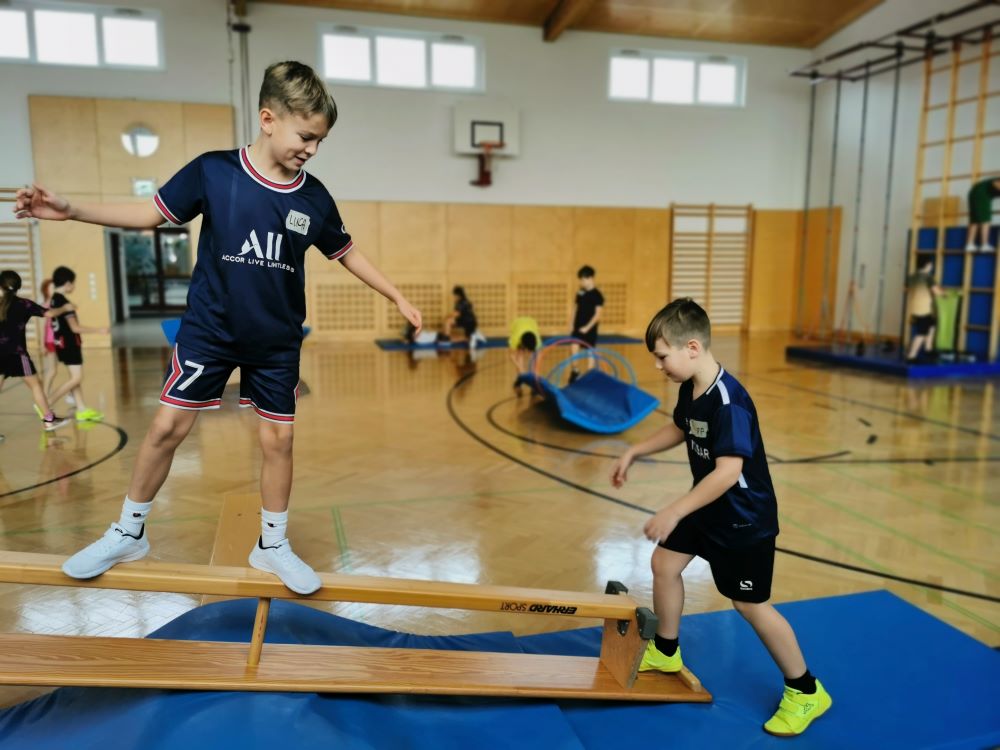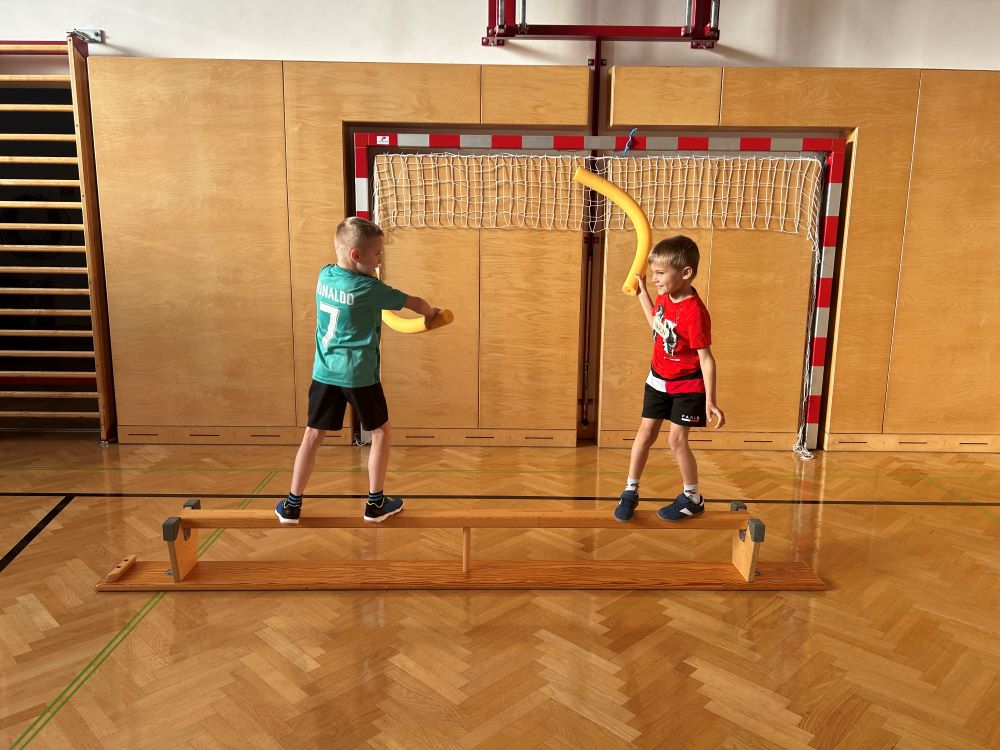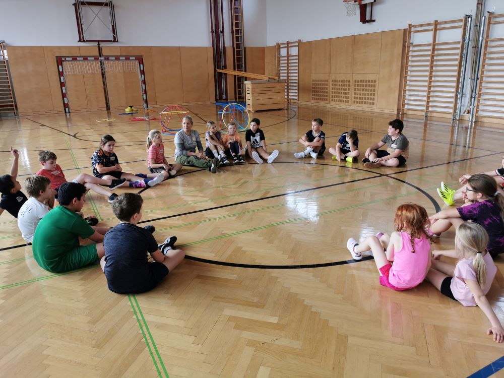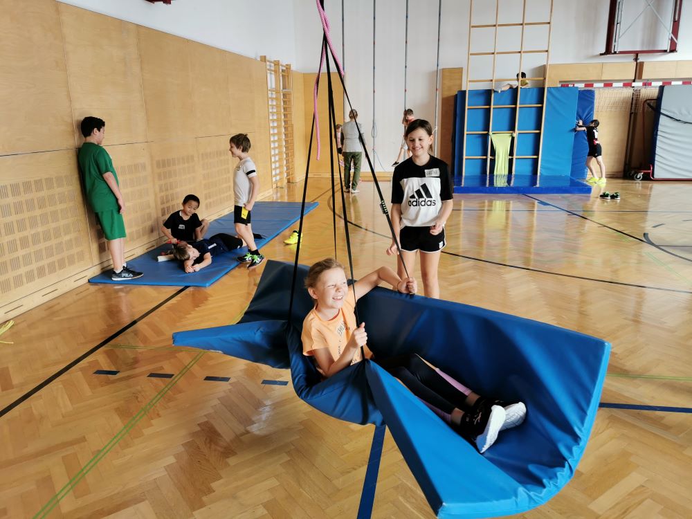 Die Kinder fanden viele Stationen zum Thema „Wahrnehmungsförderung und Achtsamkeit“ im Turnsaal vor und hatten Freude diese zu entdecken.