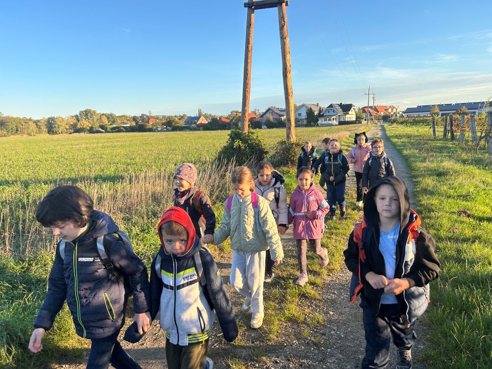 Am Montag, den 14.Oktober wanderten die vier Klassen der VS Schönau zum „Heilsamen Brunnen“. Als wir schon ein Stückchen gegangen waren, kamen alle Schüler zum Kanal. Alle Kinder durften den Hügel hinauf klettern. Das war lustig! Dann wanderten wir eine Weile durch Wälder, Felder und Straßen. Irgendwann durften wir auch die Lehrer überholen und uns aus der Reihe lösen. Endlich kamen alle 4 Klassen zum Ziel.