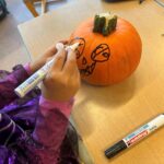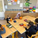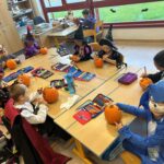 Der letzte Schultag vor den Herbstferien stand für die 1.Klasse ganz im Zeichen des bevorstehenden Halloweenfestes. Unser Klassenzimmer war geschmückt, die Kinder kamen verkleidet und auch unsere Schulaufgaben waren in Gruselaufgaben verzaubert. Um unsere Klassengemeinschaft zu stärken, mussten auch einige Aufgaben und Spiele gemeinsam gelöst werden. Ein besonderes Highlight für die Kinder war das Gestalten der Kürbisse.