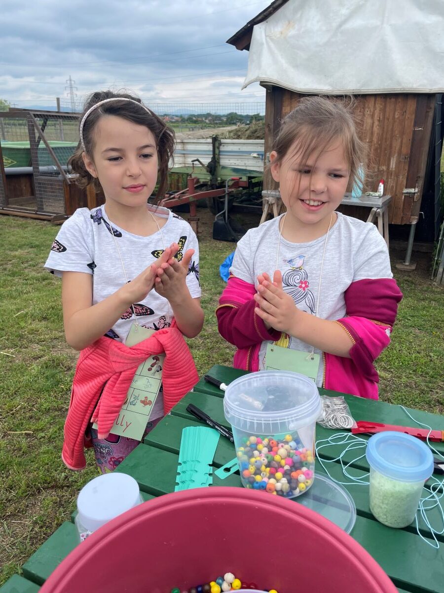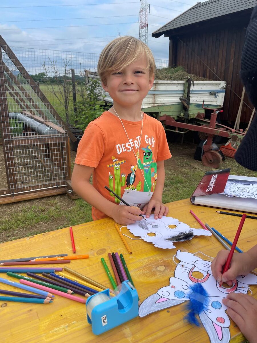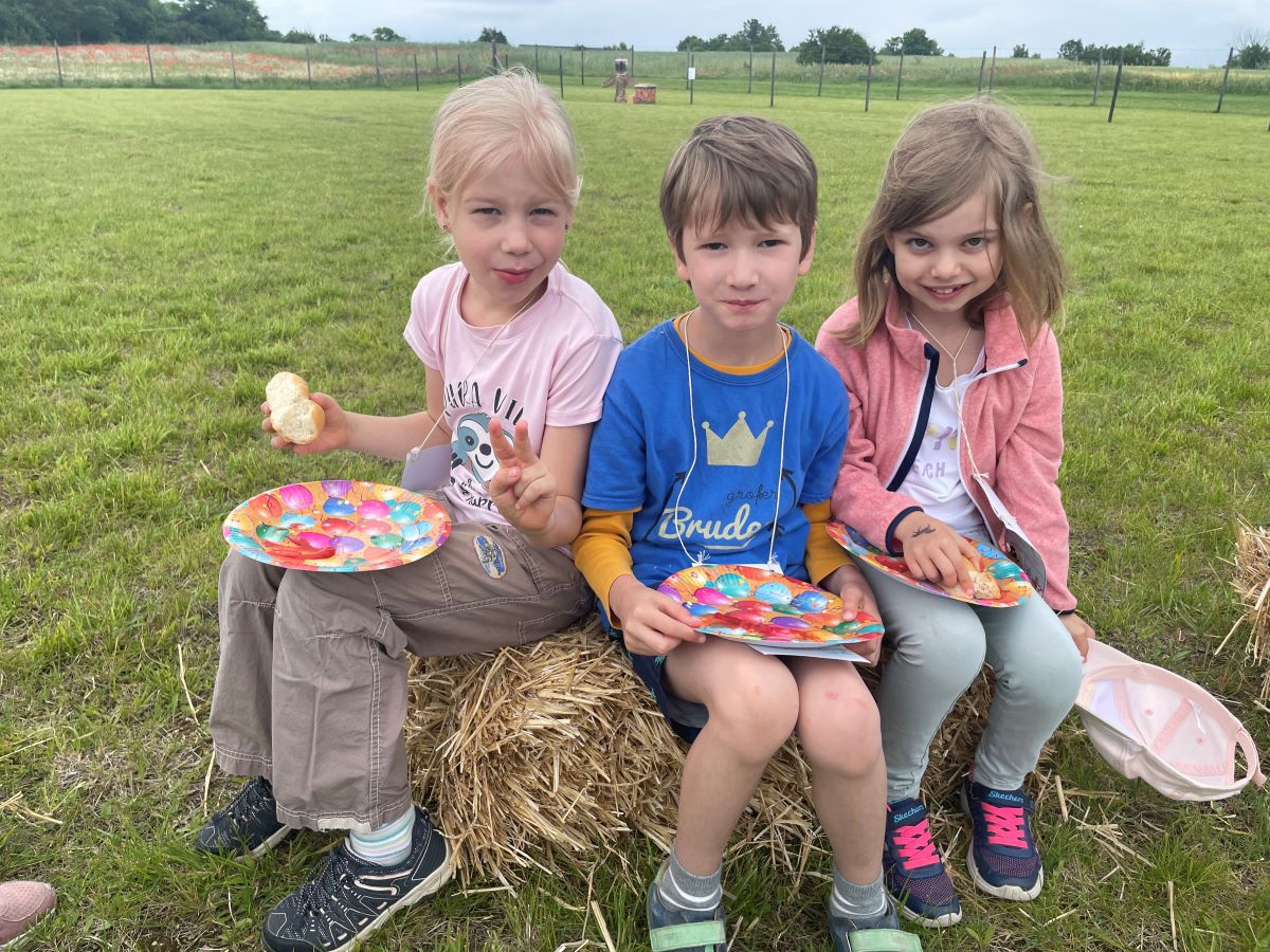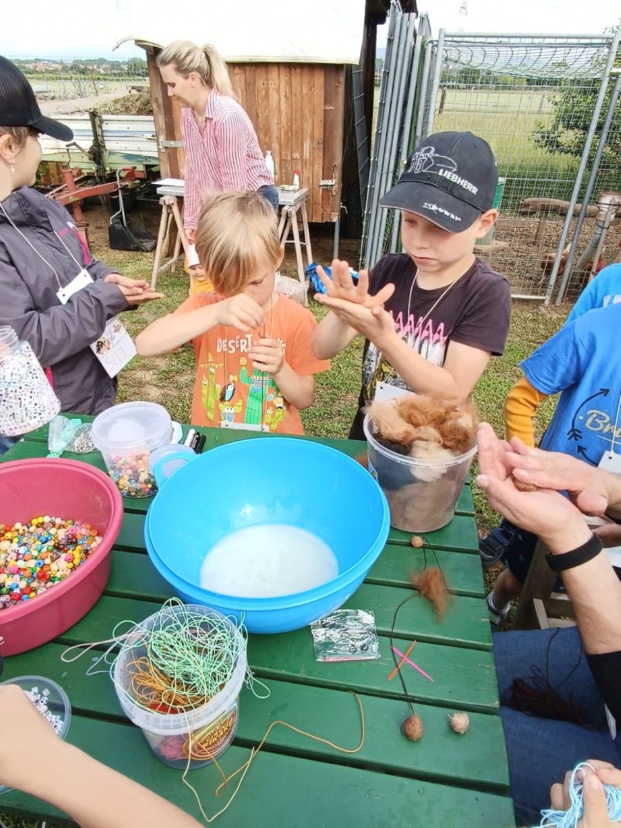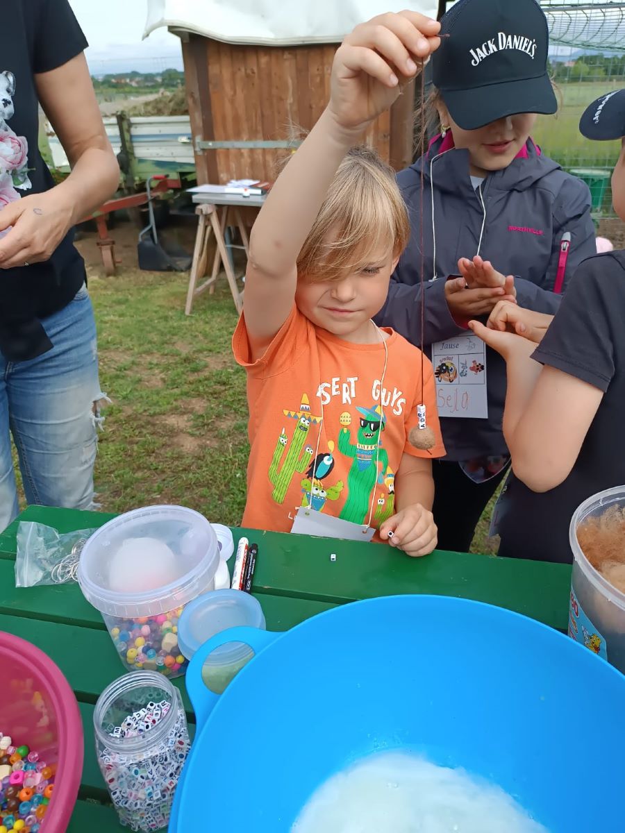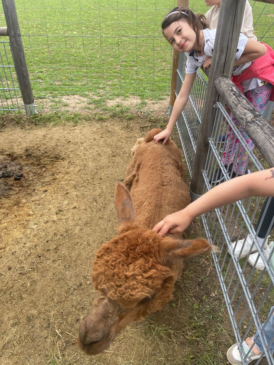 Die 1. Klasse folgte am Hexenweg den bunten Steinen und durfte sich nicht in die Irre führen lassen. Die rote Schlange musste rutschend erkundet werden, dem alten Weiblein musste über das Spinnennetz entkommen werden und es musste geschätzt werden, auf welcher Höhe die Hexe mit ihrem Hexenbesen am Baum hängengeblieben war. Dann konnten selbst Hexenbesen getestet werden, um anschließend beim Hexenbesen-Wettrennen gewinnen zu können. Auch Hänsel und Gretel statteten die Erstklässler einen Besuch ab. Nach einer sonnigen Jausenpause ging es über die Wildgehege zurück zum Streichelzoo und zum Abenteuer-Spielplatz.