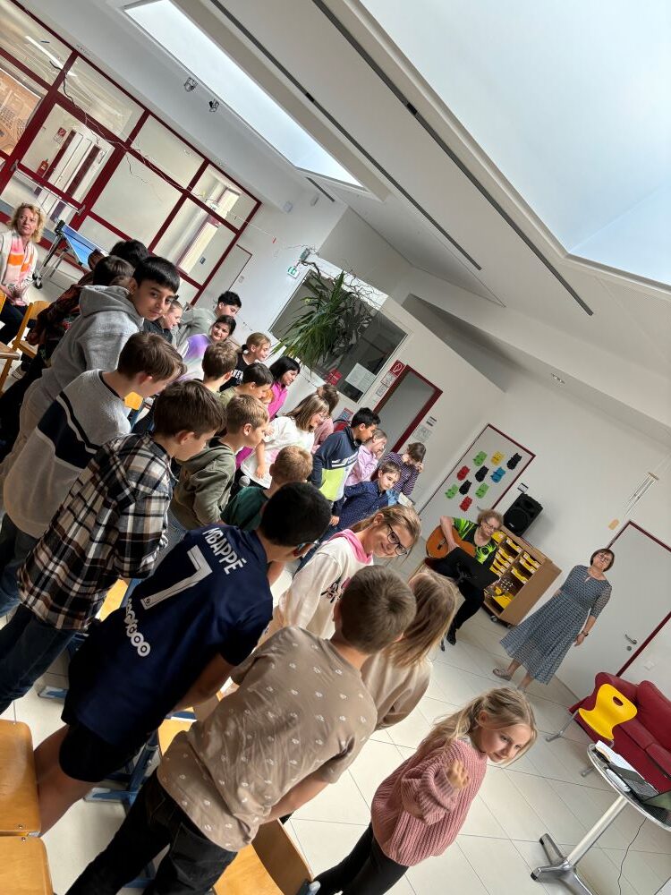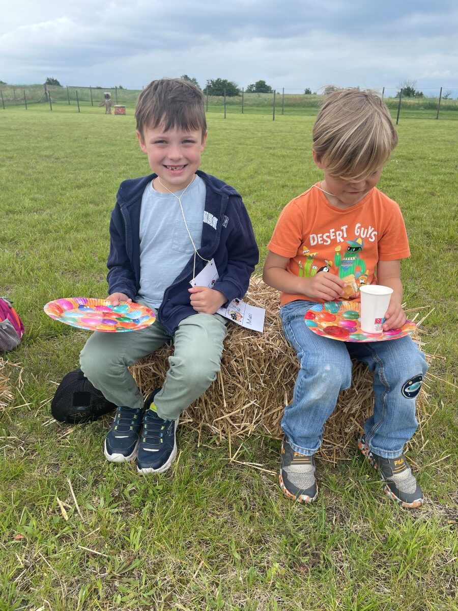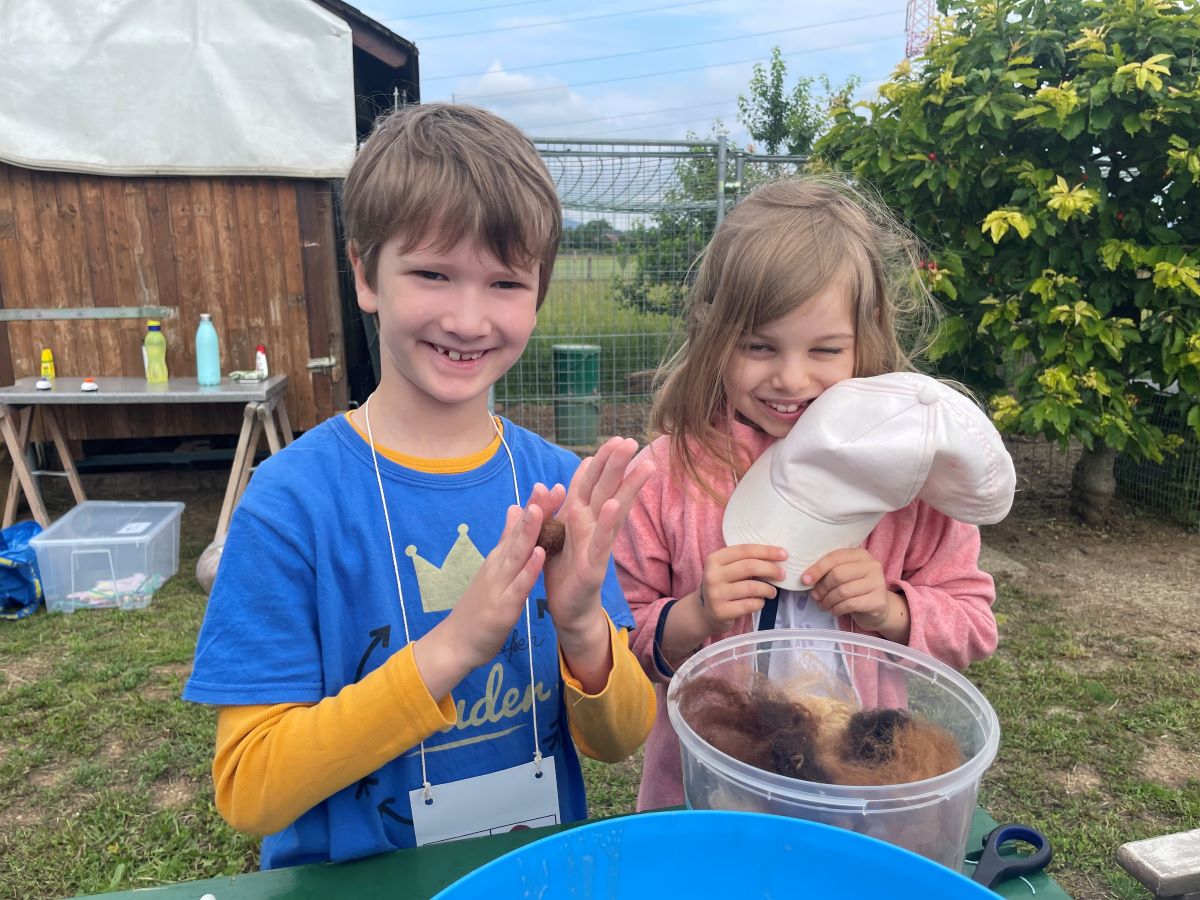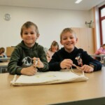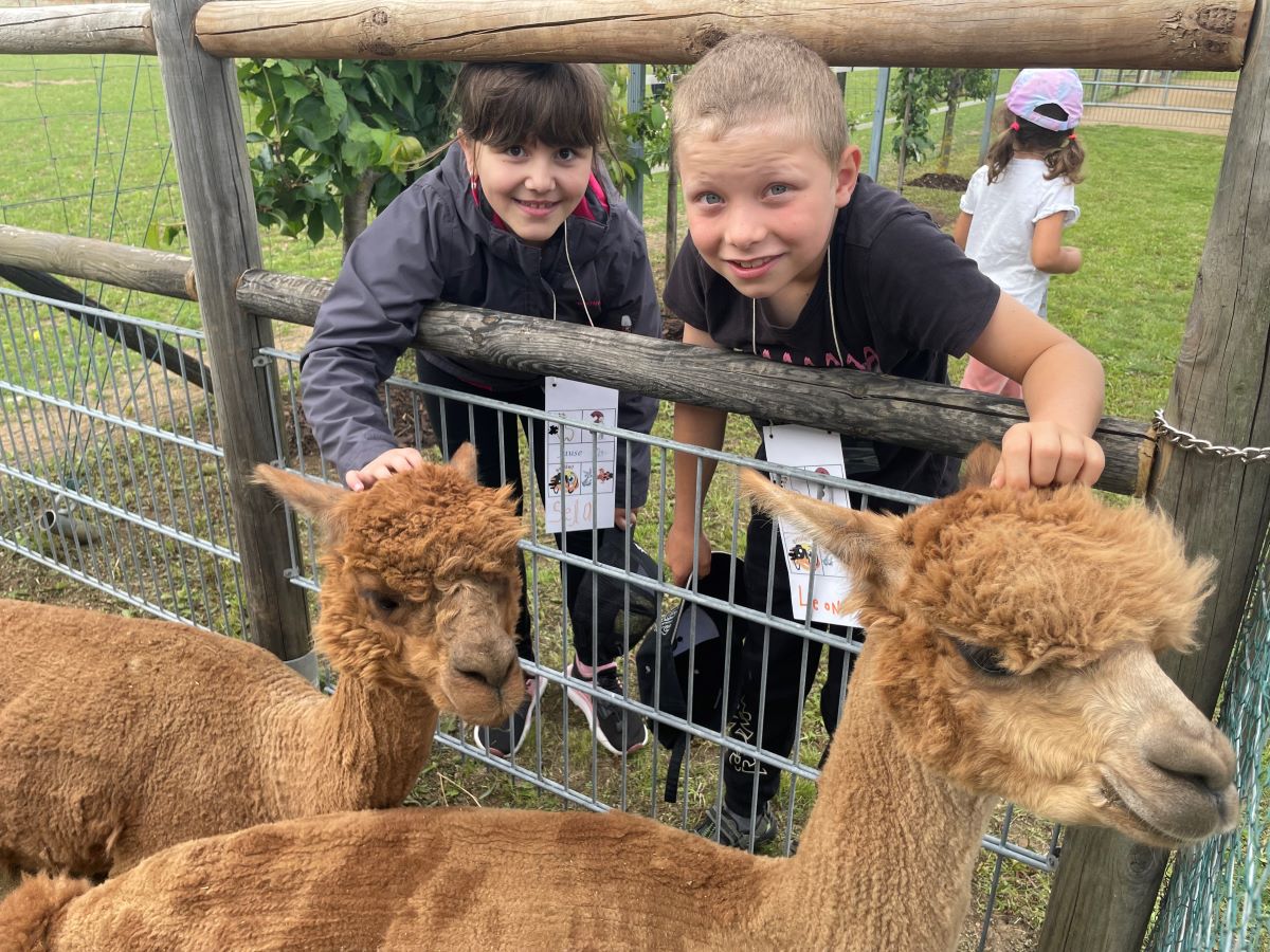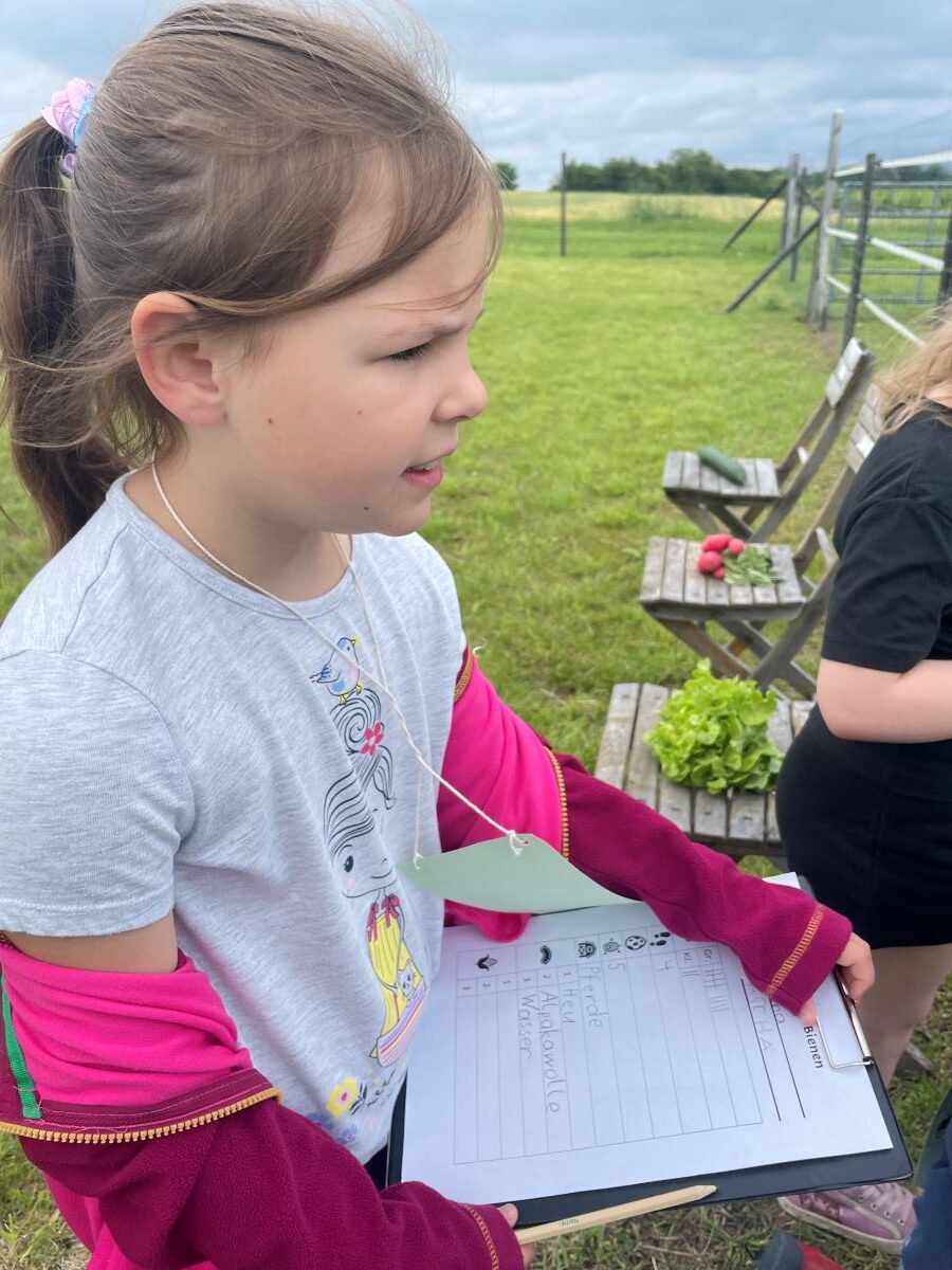 Die 1. Klasse folgte am Hexenweg den bunten Steinen und durfte sich nicht in die Irre führen lassen. Die rote Schlange musste rutschend erkundet werden, dem alten Weiblein musste über das Spinnennetz entkommen werden und es musste geschätzt werden, auf welcher Höhe die Hexe mit ihrem Hexenbesen am Baum hängengeblieben war. Dann konnten selbst Hexenbesen getestet werden, um anschließend beim Hexenbesen-Wettrennen gewinnen zu können. Auch Hänsel und Gretel statteten die Erstklässler einen Besuch ab. Nach einer sonnigen Jausenpause ging es über die Wildgehege zurück zum Streichelzoo und zum Abenteuer-Spielplatz.