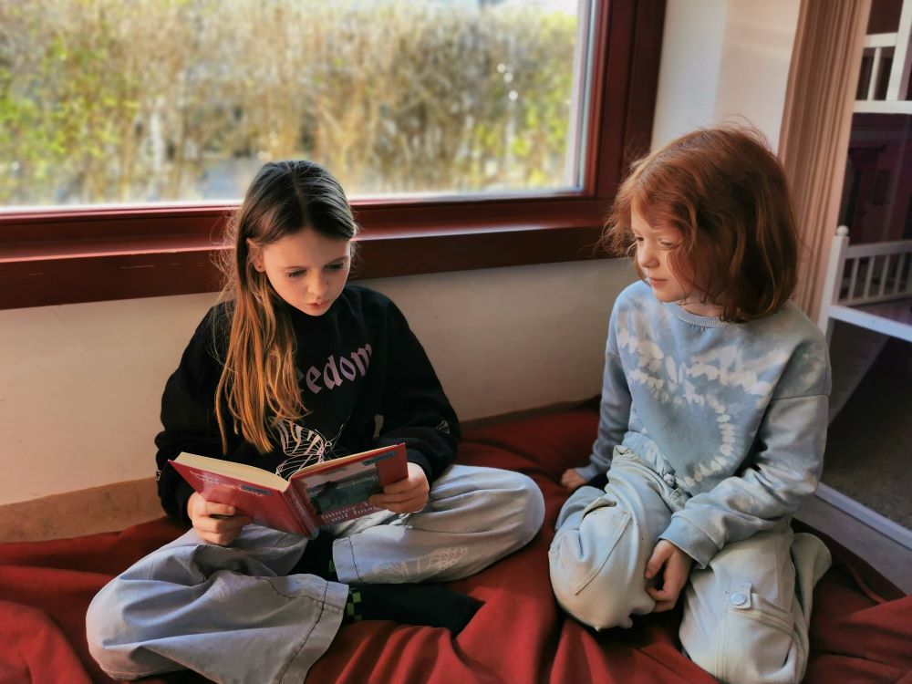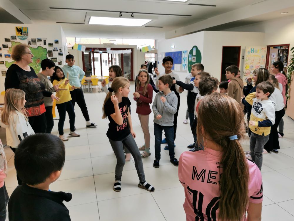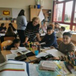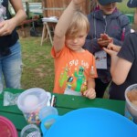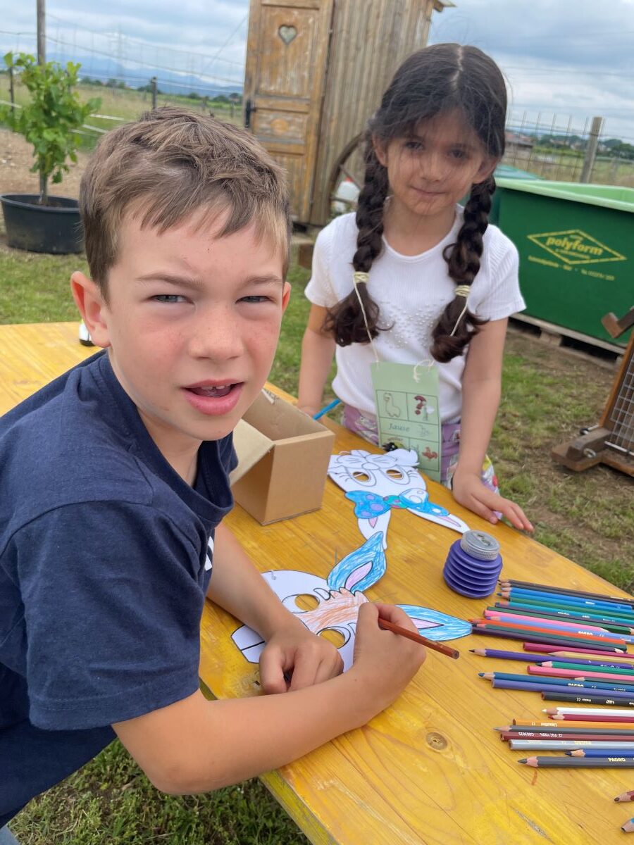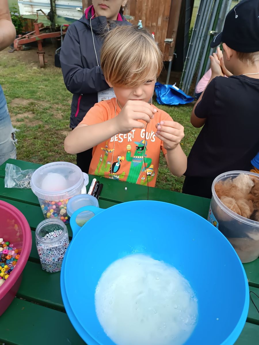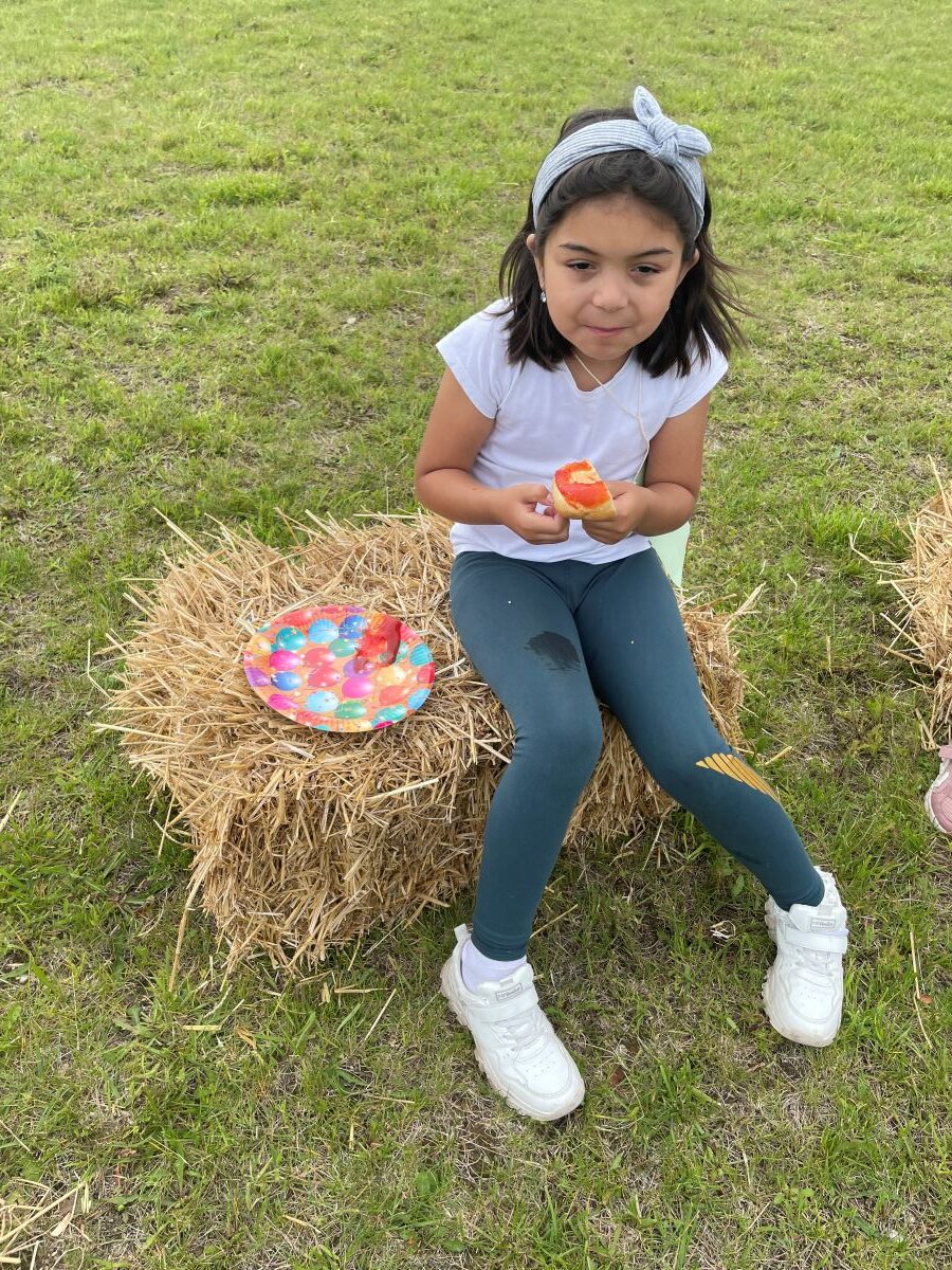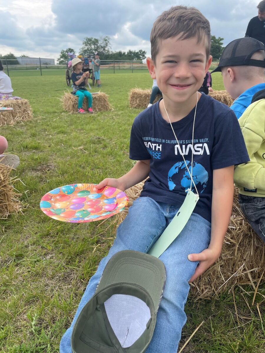 Die 1. Klasse folgte am Hexenweg den bunten Steinen und durfte sich nicht in die Irre führen lassen. Die rote Schlange musste rutschend erkundet werden, dem alten Weiblein musste über das Spinnennetz entkommen werden und es musste geschätzt werden, auf welcher Höhe die Hexe mit ihrem Hexenbesen am Baum hängengeblieben war. Dann konnten selbst Hexenbesen getestet werden, um anschließend beim Hexenbesen-Wettrennen gewinnen zu können. Auch Hänsel und Gretel statteten die Erstklässler einen Besuch ab. Nach einer sonnigen Jausenpause ging es über die Wildgehege zurück zum Streichelzoo und zum Abenteuer-Spielplatz.