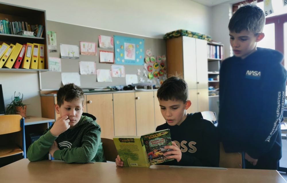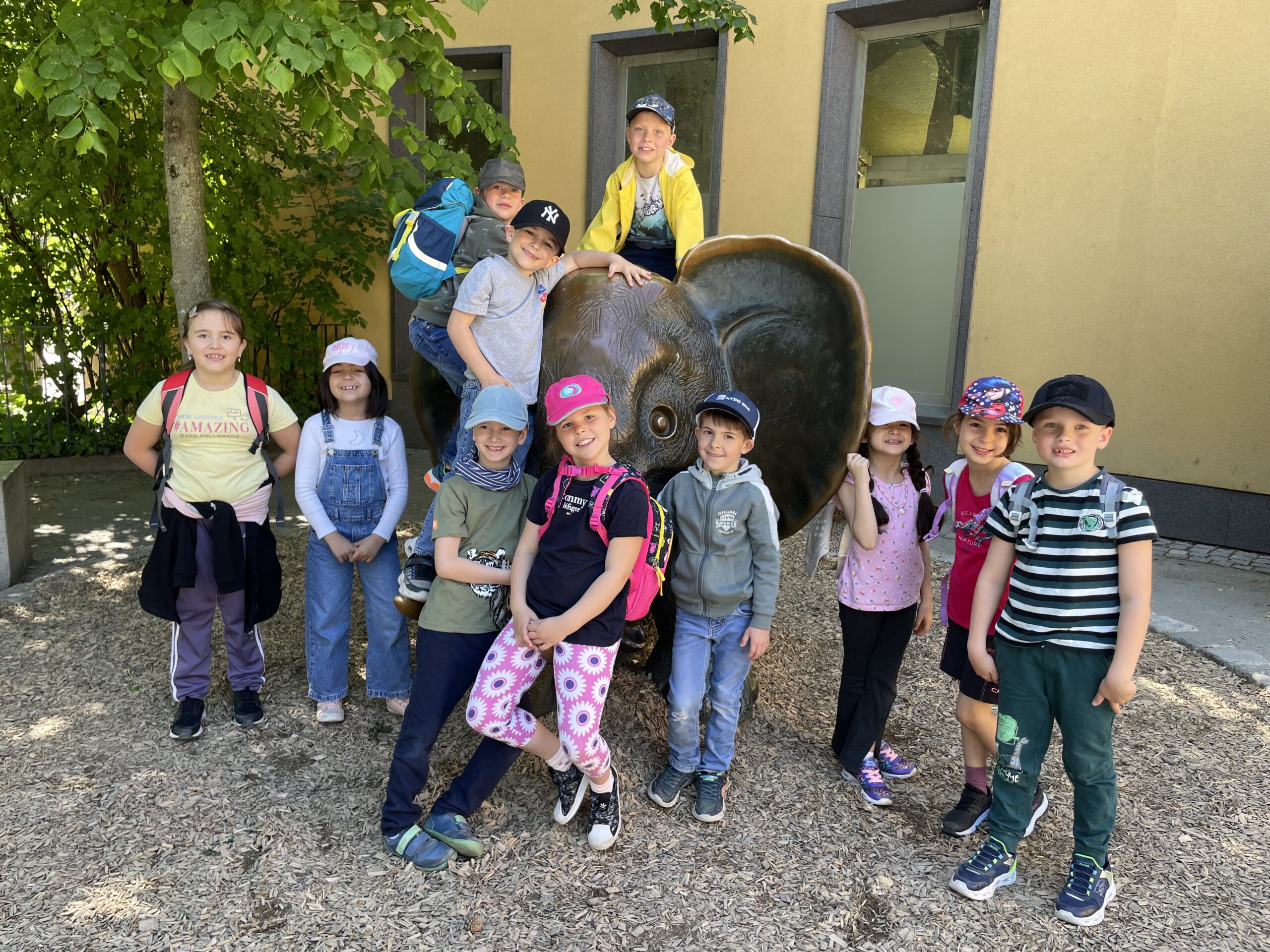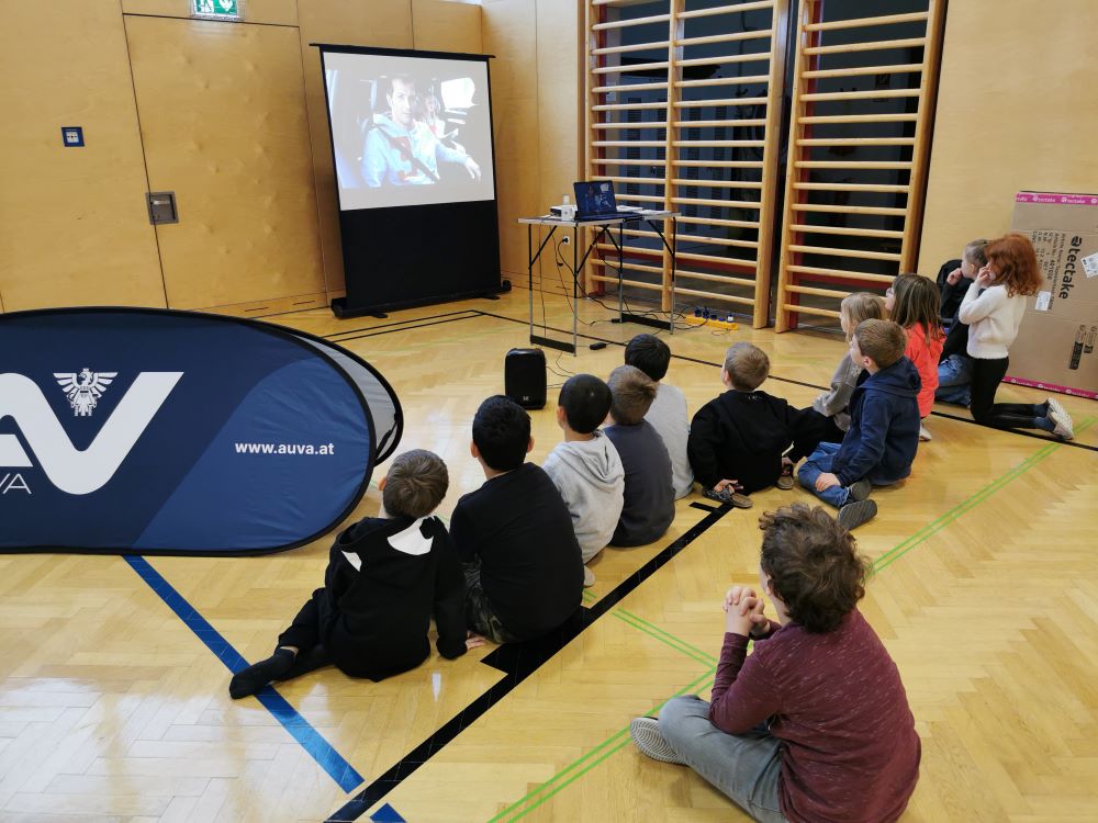 Oben im Naturpark angekommen, erhielten die Kinder der Klassen 2 bis 4 einen Bleistift und ein Heft und wurden zu echten Forscher/innen. Sie lasen riesige Schautafeln, um die Rätsel im Heft zu lösen und den Schatz zu finden. Eine Schatzkarte führte einige Kinder in das verzweigte Tierspurlabyrinth, zum magischen Drachenplatz, auf den hohen Fledermausberg und in die tiefen Murmelhöhlen. Im Steinbock-Kino erlebten die Kinder die Hohe Wand aus der Perspektive der hier lebenden Tiere. Zum Schluss war das Rätsel gelöst und mit dem Lösungswort durften sich die Schüler/innen einen Schlecker abholen.