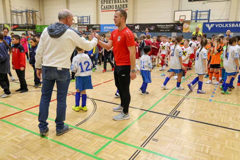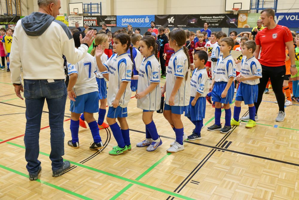 Auch heuer war unsere Schule beim Sumsi-Erima-Fußballcup für Volksschulen in der Sporthalle Baden vertreten. Aufgrund von Krankheit konnten einige Kinder leider nicht mitspielen. Unsere junge Mannschaft trat mit 10 Spielern an. Angefeuert von einige Eltern erreichten die Kinder höchstmotiviert schlussendlich den 10 Platz. Danke an den Trainer, Herrn Thomas Bauer, für die Vorbereitung der Mannschaft und das Coaching während des Turnieres. Der Elternverein, in Vertretung von Obfrau Nicole Lüsebrink, sorgte für das leibliche Wohl unserer Spieler und Spielerinnen – herzlichen Dank auch dafür!